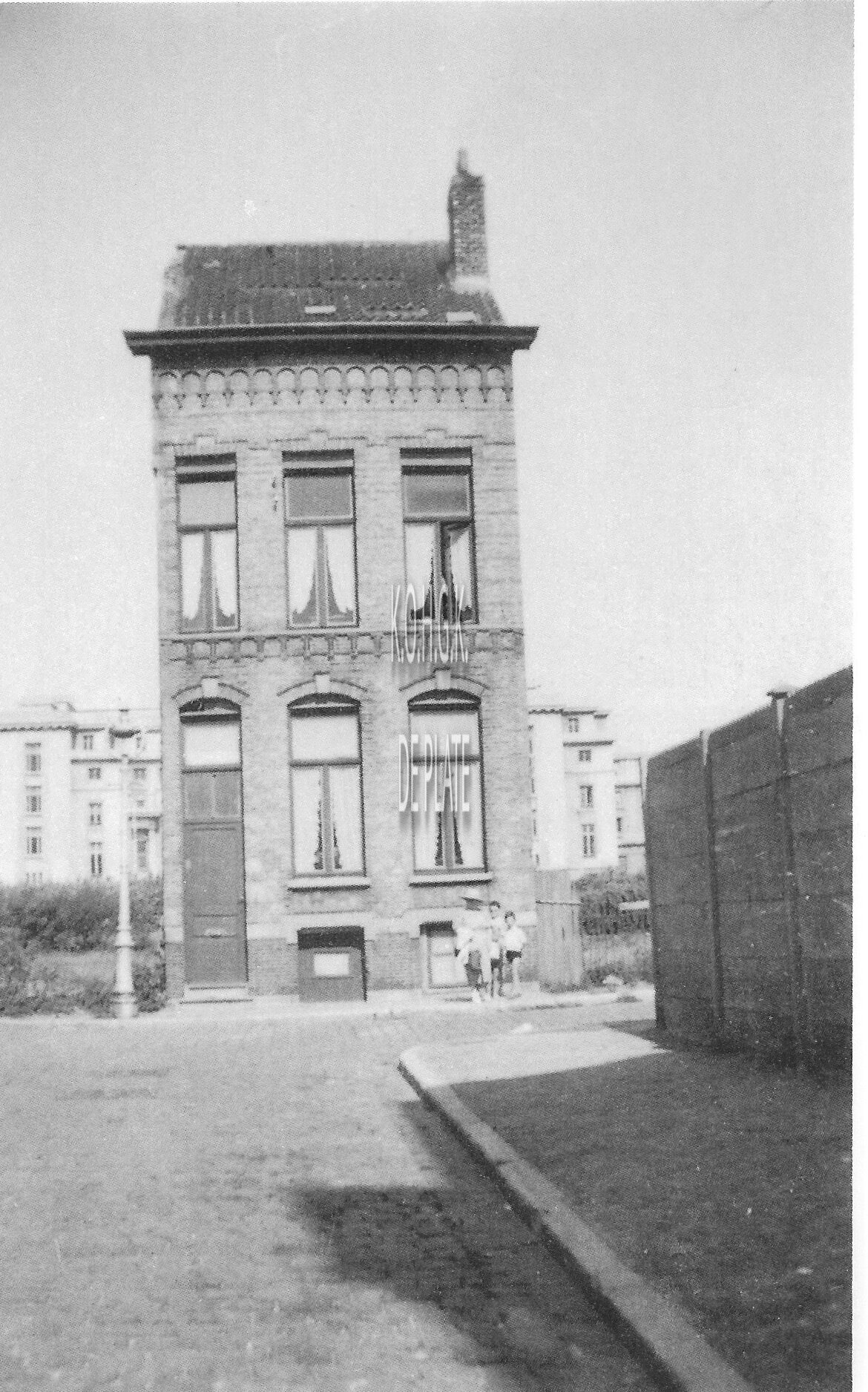 Eén der laatste huizen aan de noordkant van de Wellingtonstraat. Het gebouw keek uit op de François Musinstraat. Op de achtergrond bemerkt men het Thermencompleks.