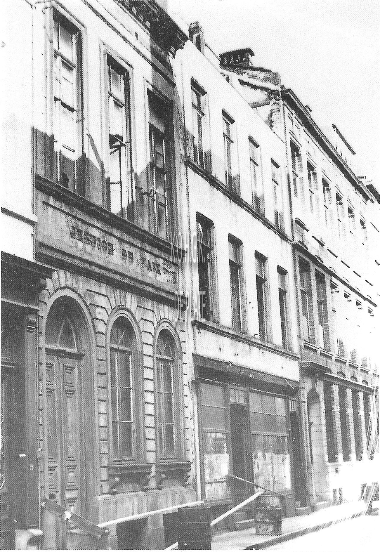 De oude gebouwen van het "Vrije Technisch Instituut (VTI)". Ze werden gesloopt voor de bouw van een nieuw scholencompleks dat op 22 mei 1968 werd ingewijd door Monseigneur E. De Smedt, bisschop van Brugge