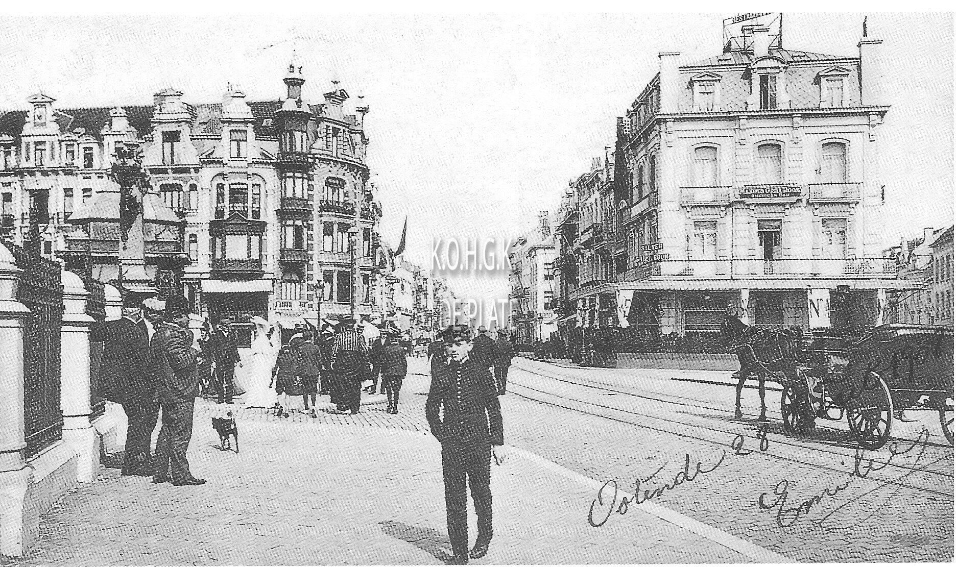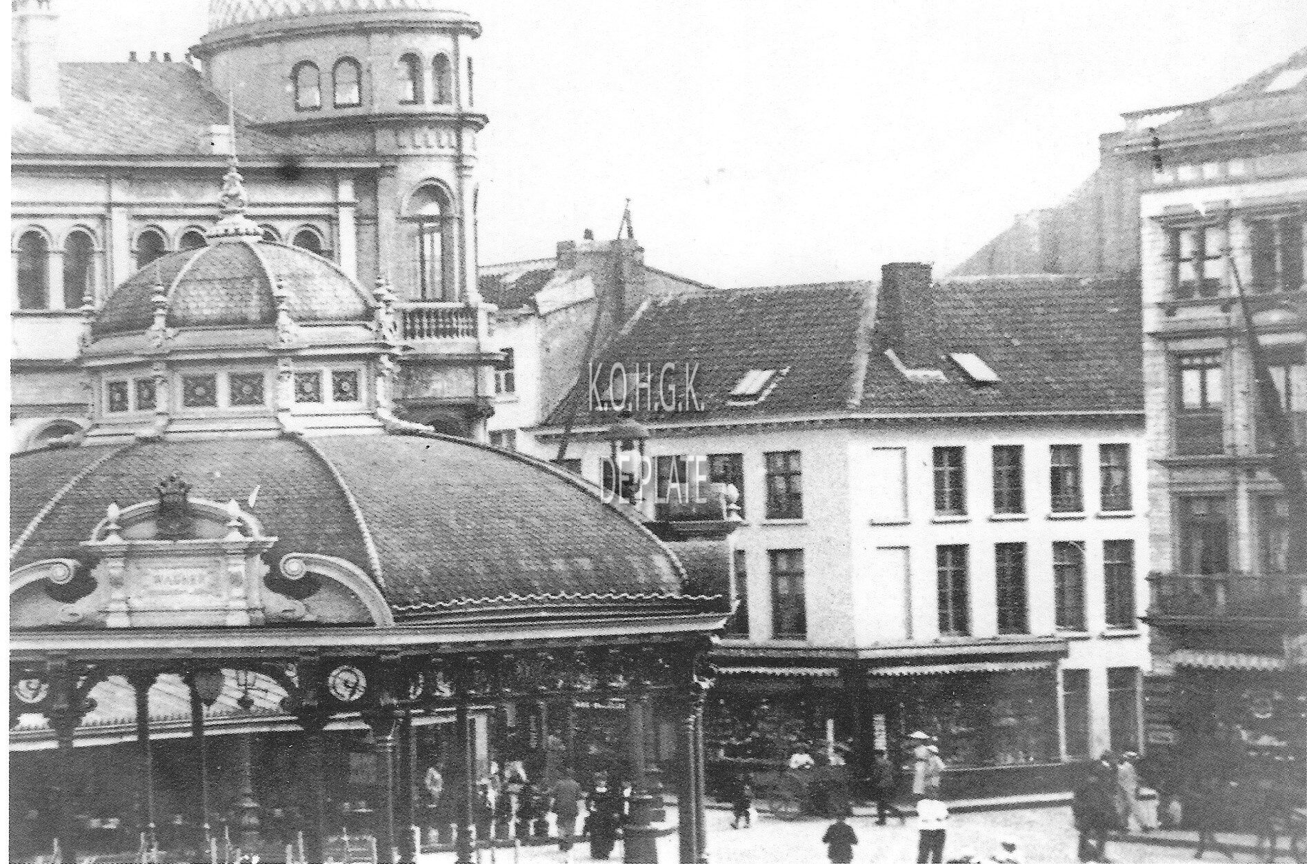 Zo zag het Marie-Joséplein er uit in 1910, na de afbraak van de schouwburg, gesloopt in 1906. Het gebouwtje tegen de gevel, links van de tram, was een openbare waterplaats.