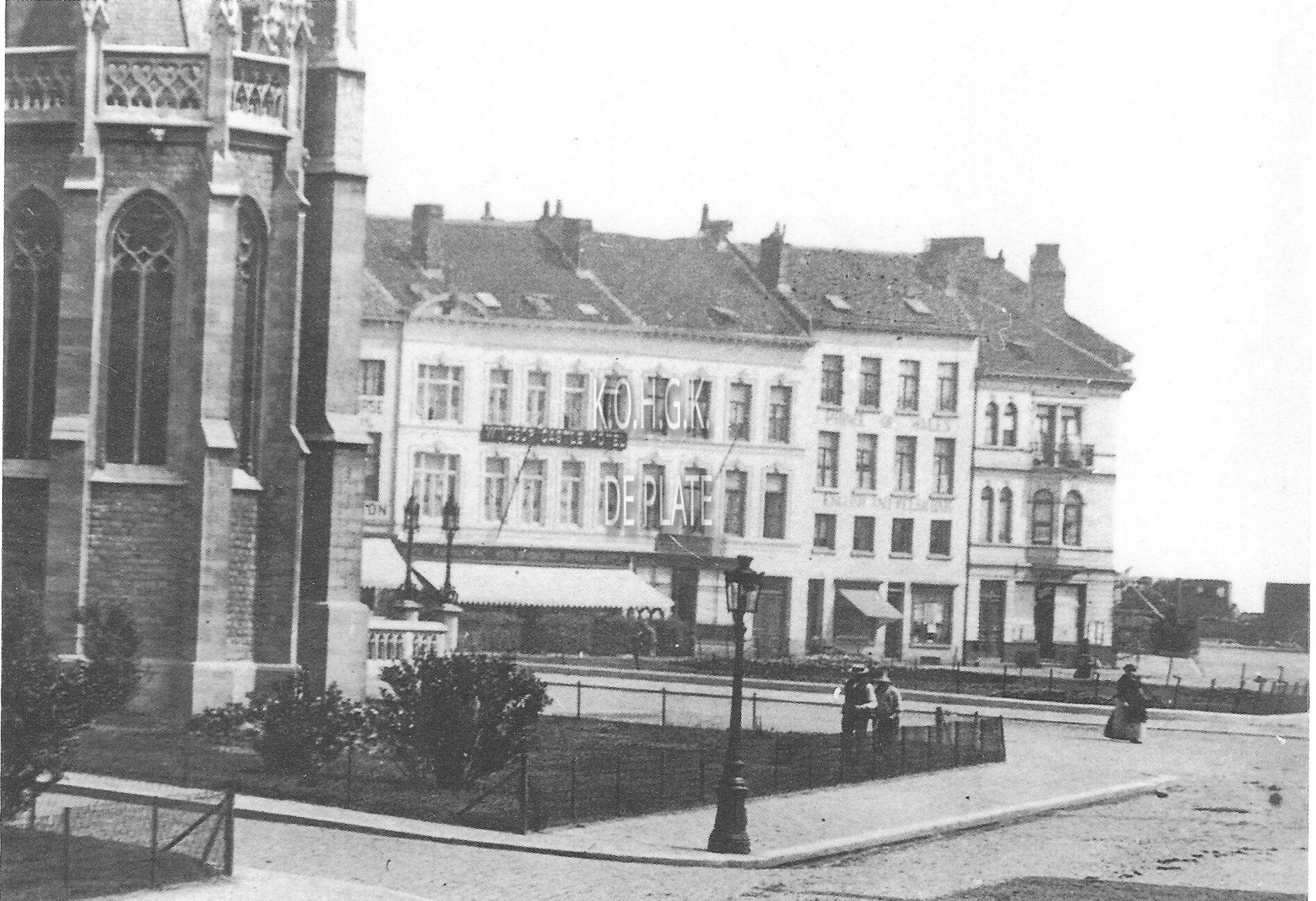 Gedeelte van het plein, gezien vanaf de Jozef II-straat. Rechts van de Sint Petrus en Pauluskerk, het "Windsor Castle Hotel", met ernaast het "Hotel Prince of Wales".