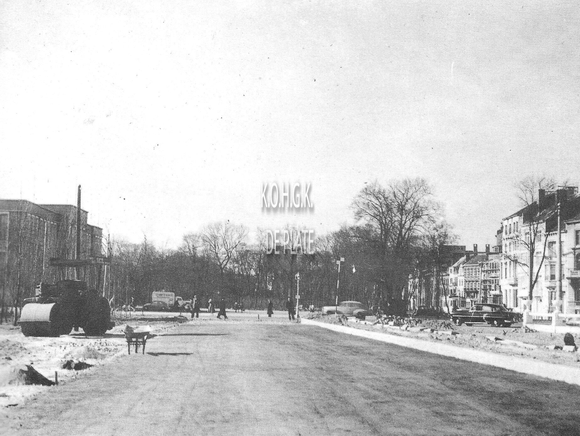 Aanleg van de Leopold II-laan als verlengstuk van de autostrade Brussel-Oostende, dwars door het Leopoldpark, aansluitend op de Leopoldlaan, die vanaf 6 februari 1956 werd gewijzigd in Leopold II-laan. Links het Gerechthof en rechts de Hendrik Serruyslaan