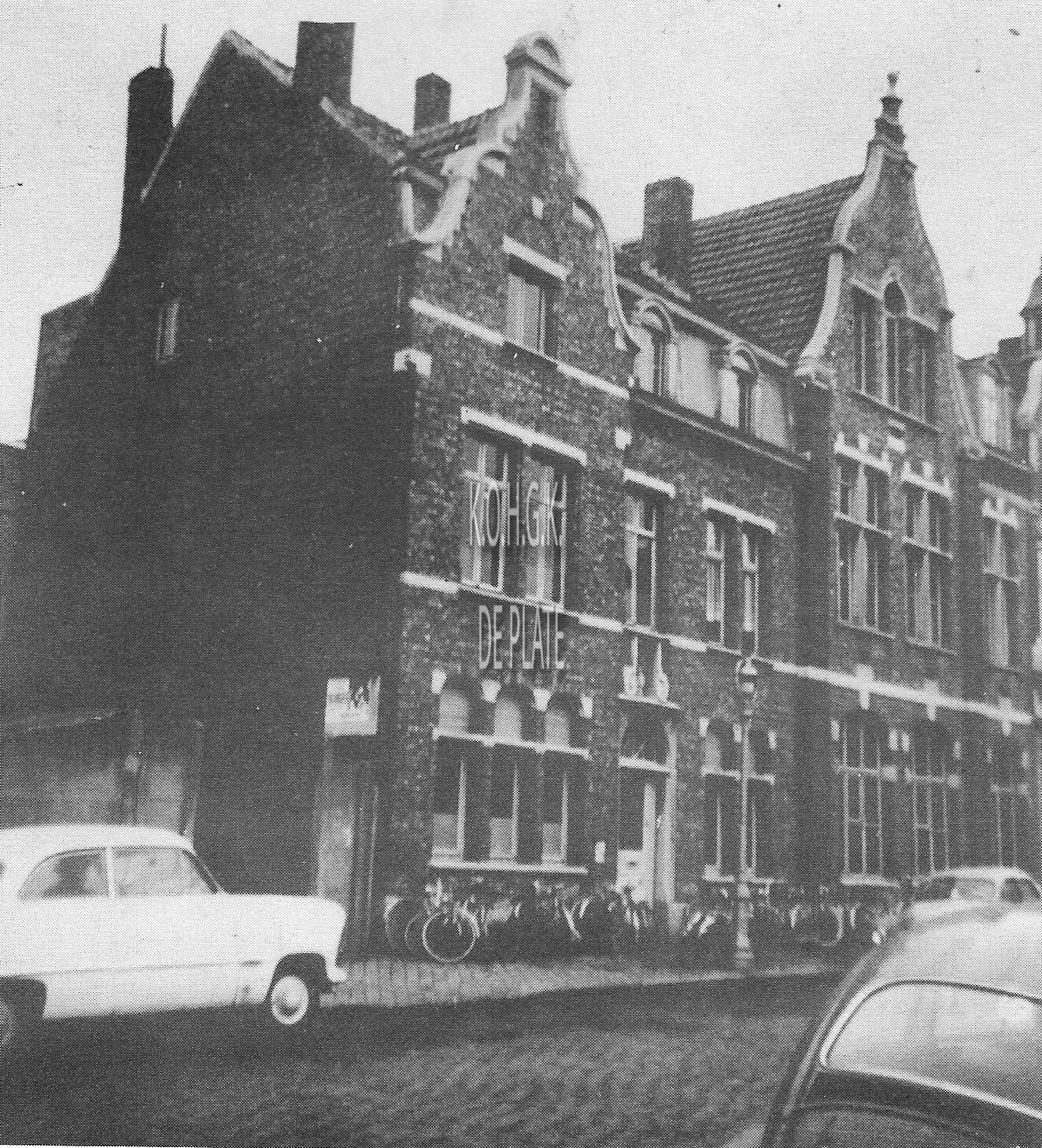 De oude gebouwen van het Vrij Technisch Instituut (VTI). Gesloopt voor de bouw van de nieuwe school, ingewijd door Mgr. Emiel De Smedt, bisschop van Brugge, op 22 mei 1968