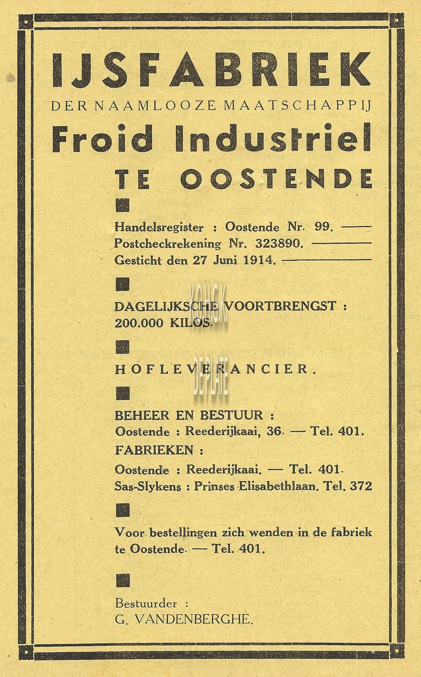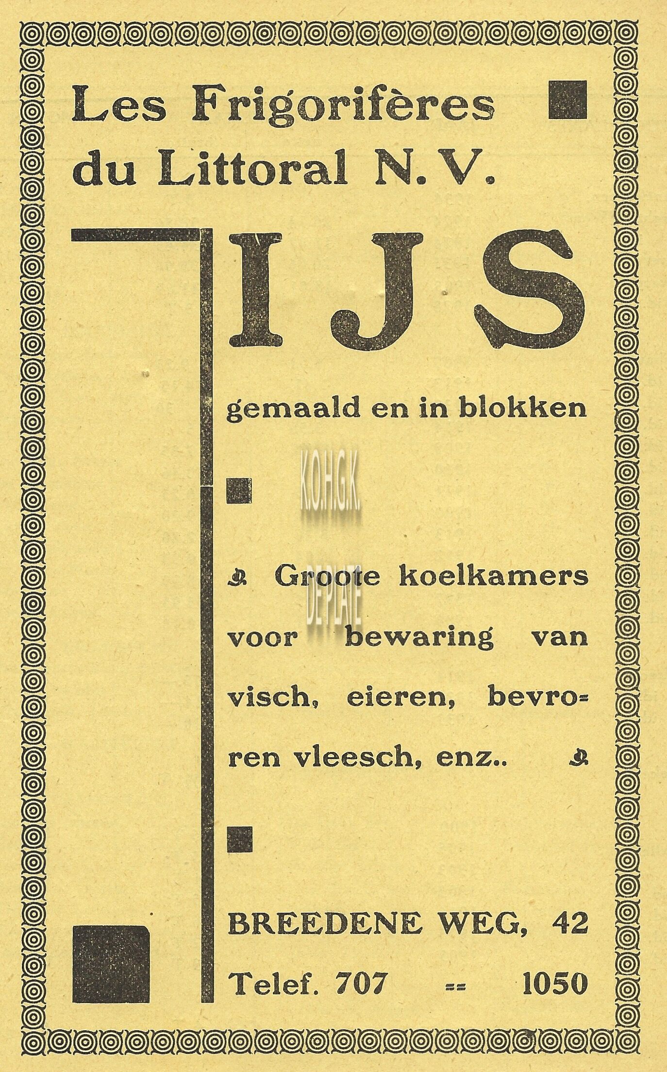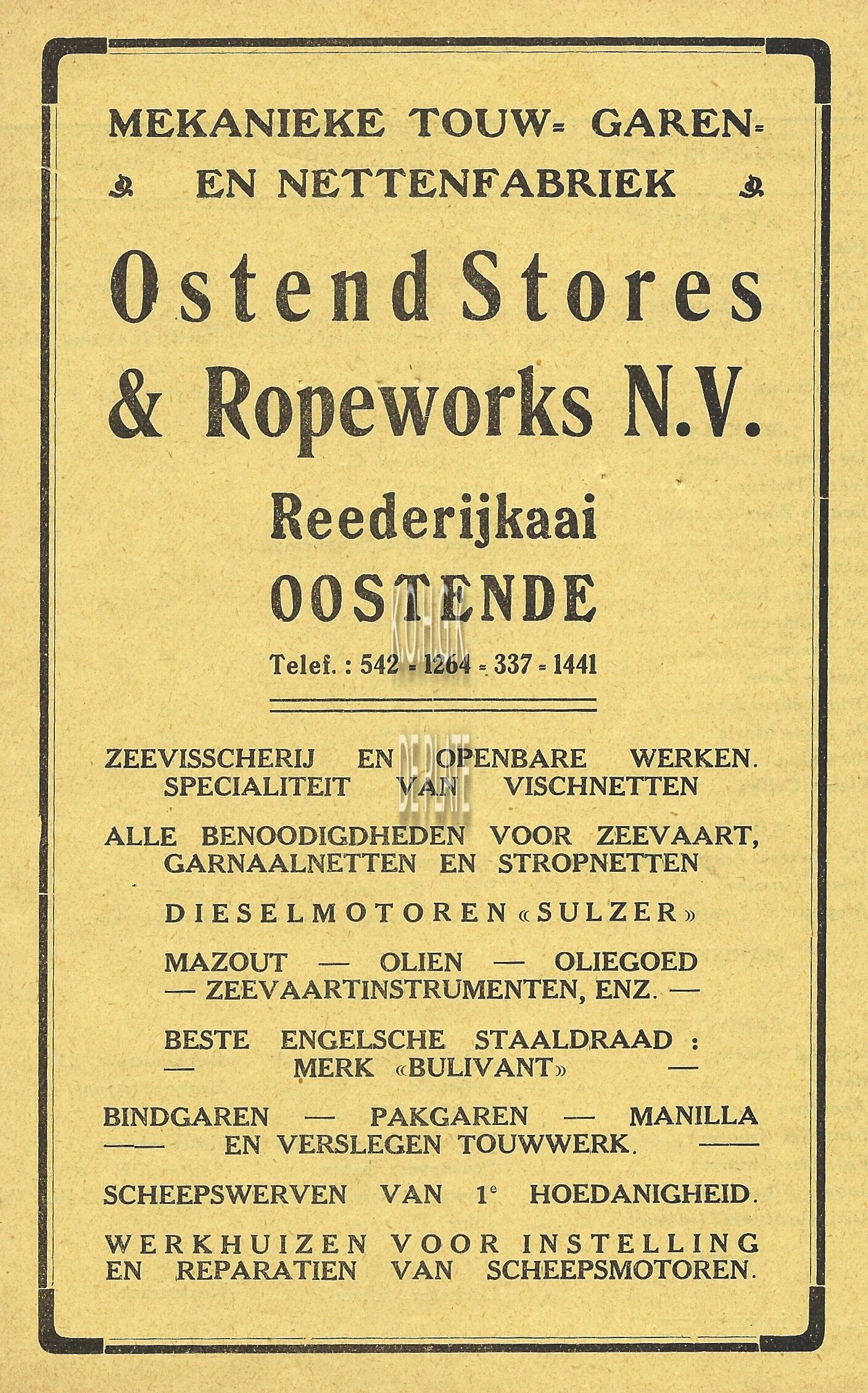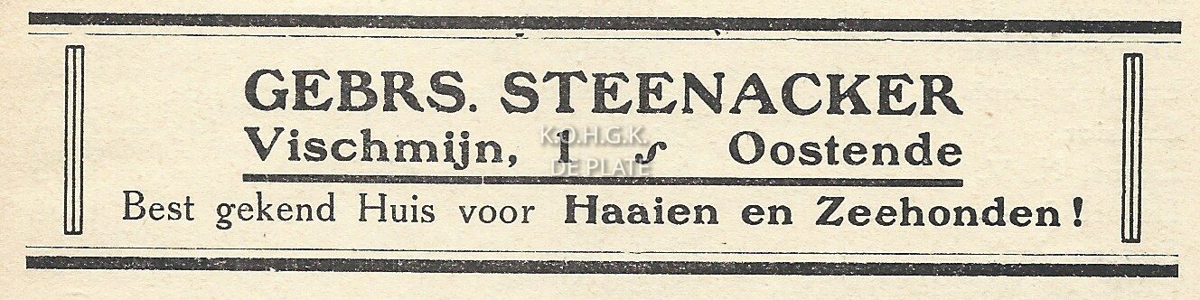 Advertentie : Gebrs. Steenacker. Vismijn 1, Oostende