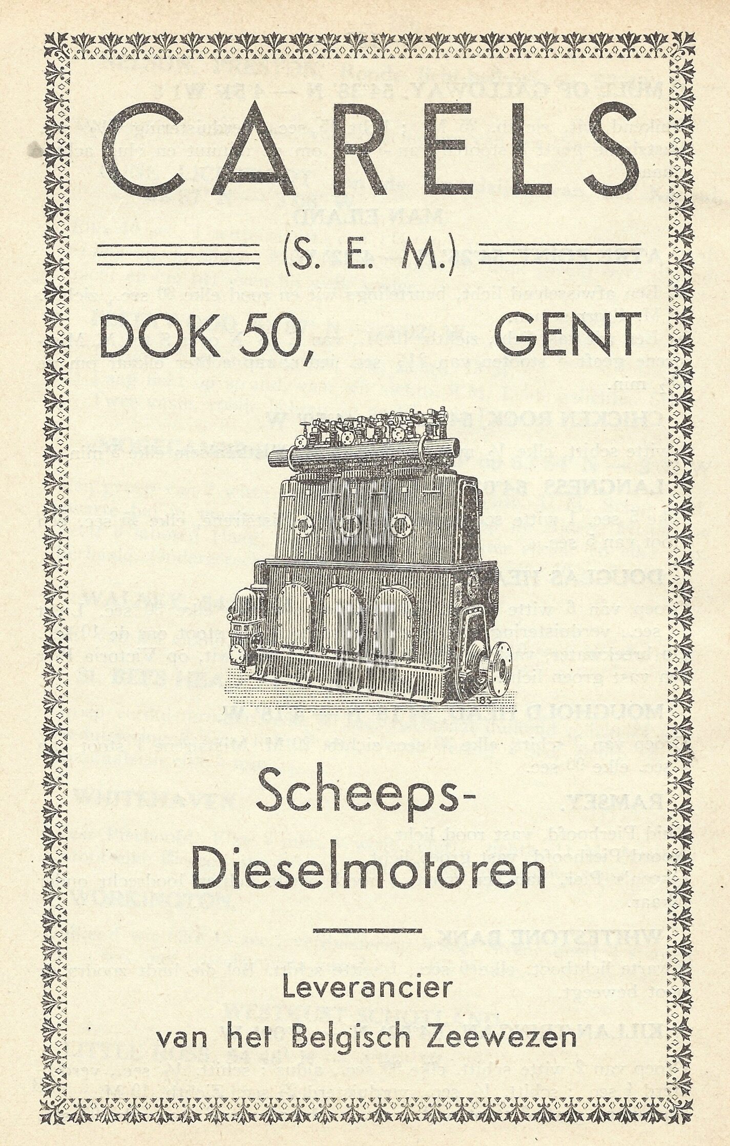 Advertentie : Carels (SEM). Scheepsdieselmotoren. Dok 50, Gent