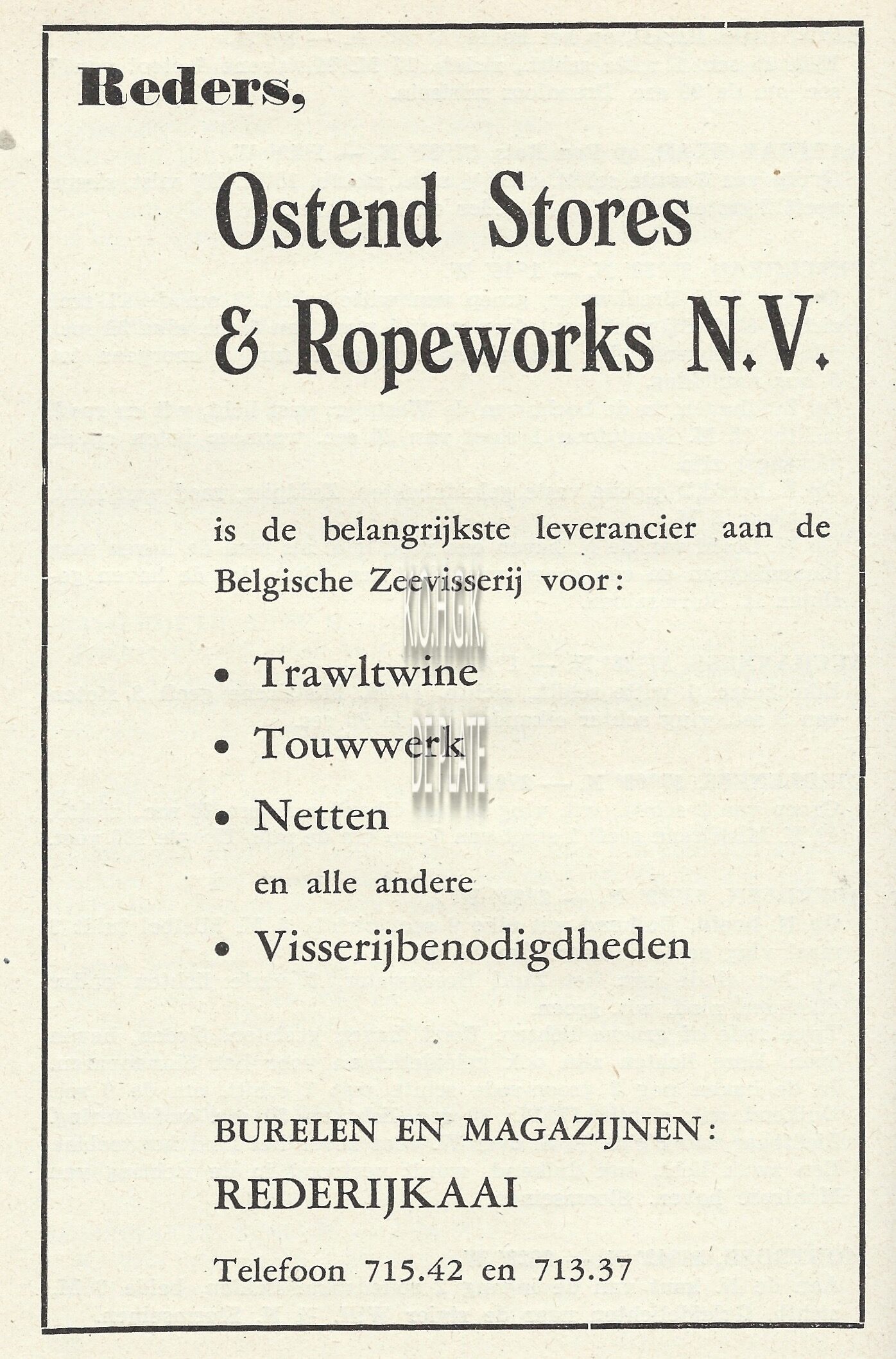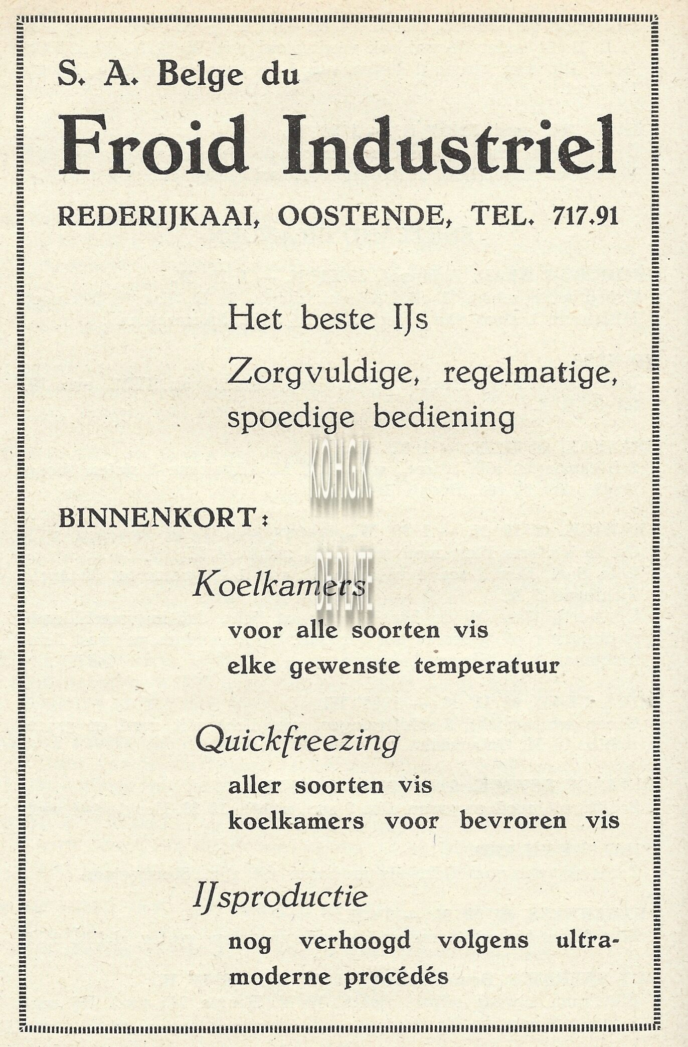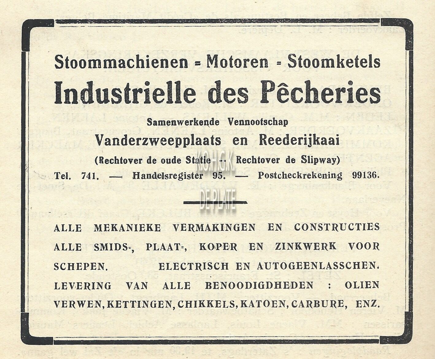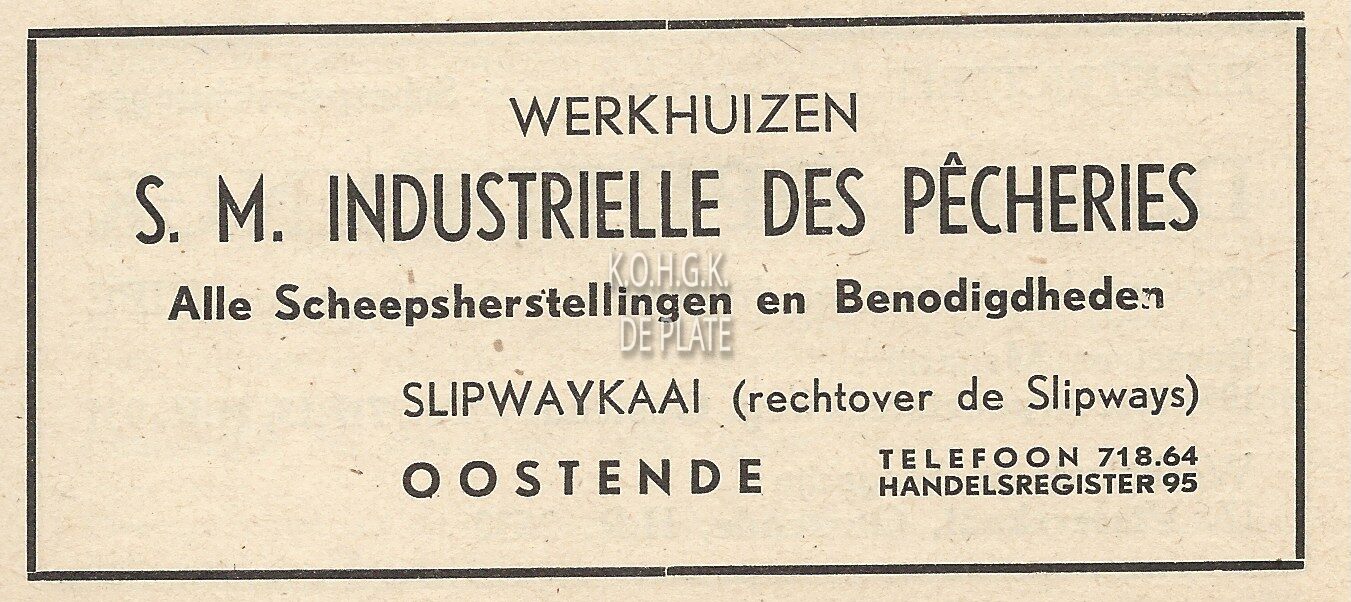 Advertentie : S.M. Industrielle des Pêcheries. Slipwaykaai Oostende