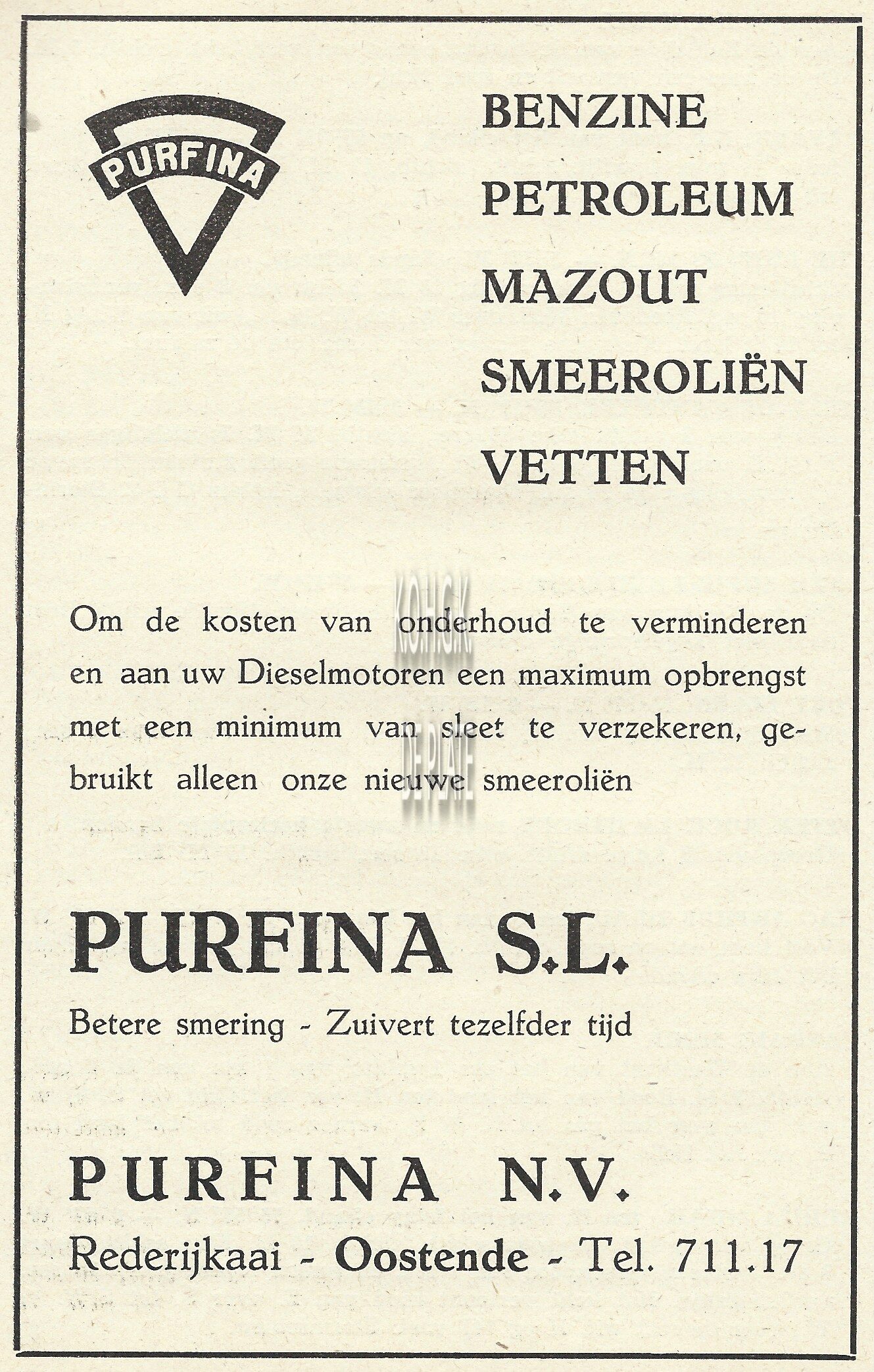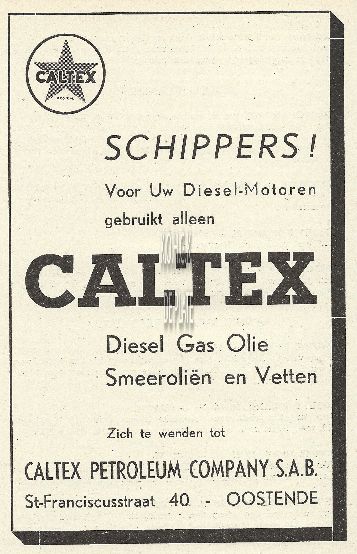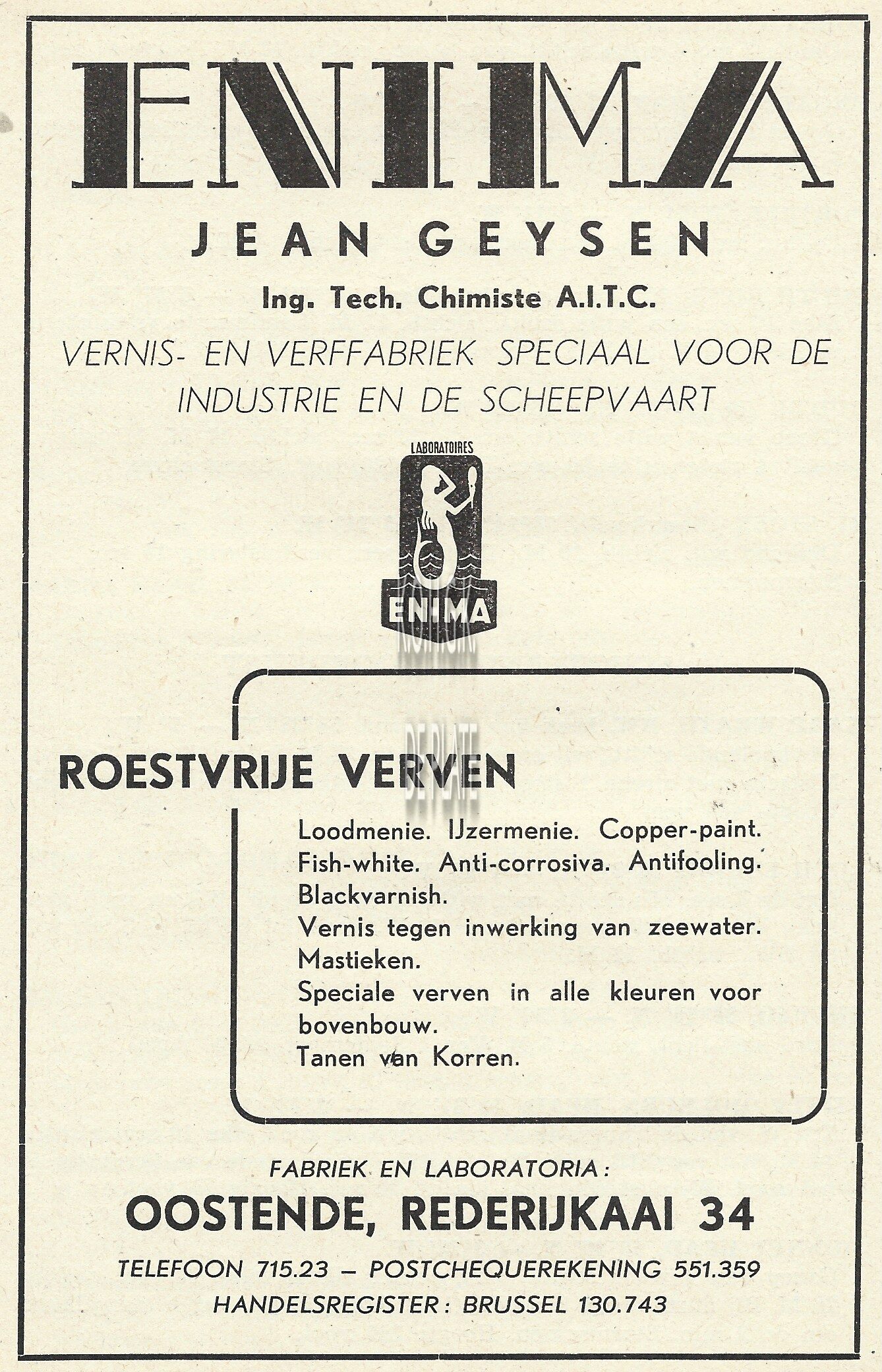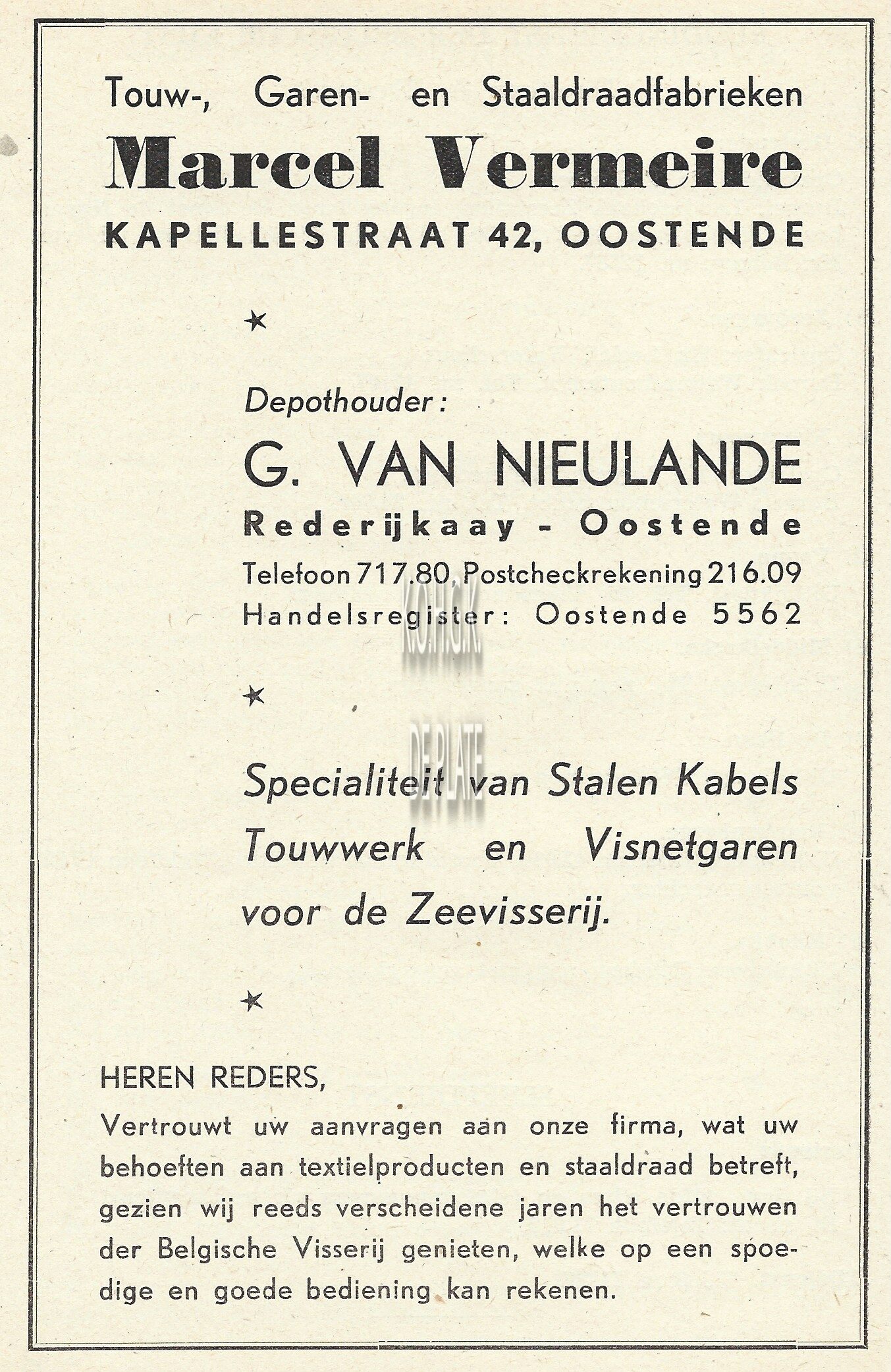 Advertentie : S.M. Industrielle des Pêcheries. Slipwaykaai Oostende
