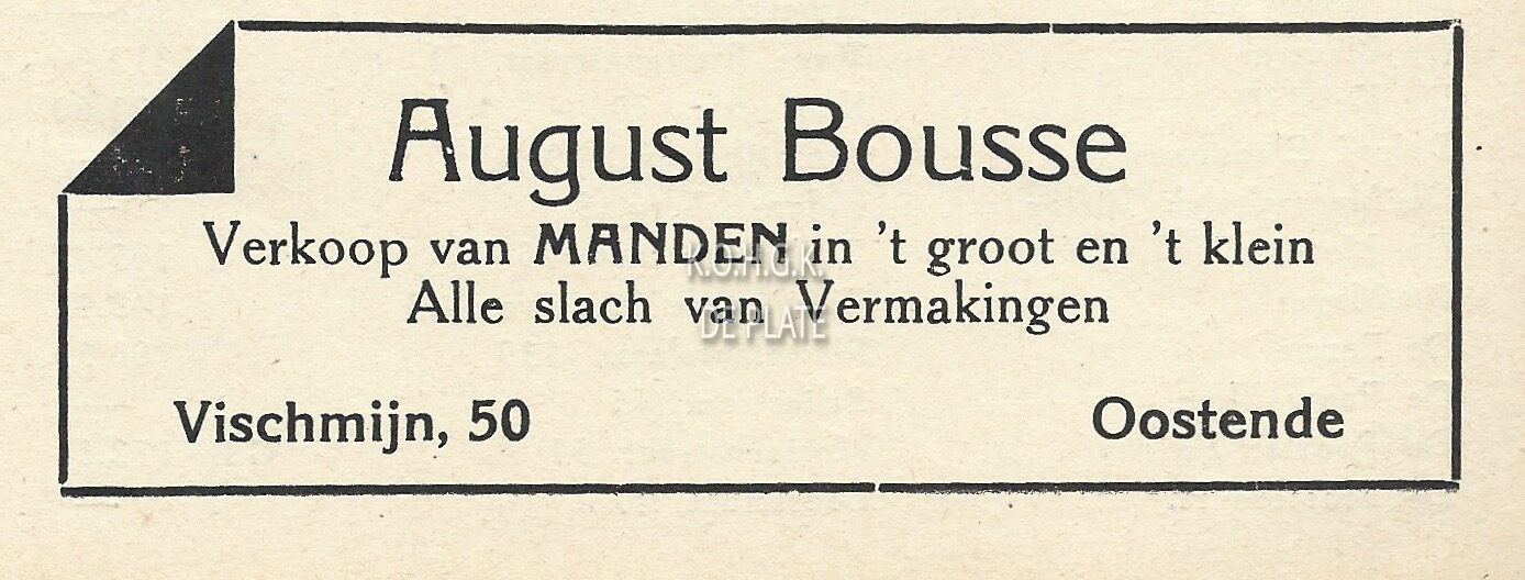 Advertentie : August Bousse. Verkoop van manden. Vismijn 50, Oostende