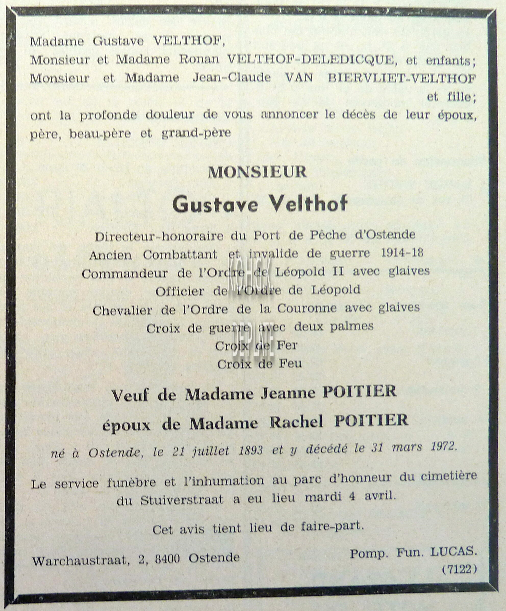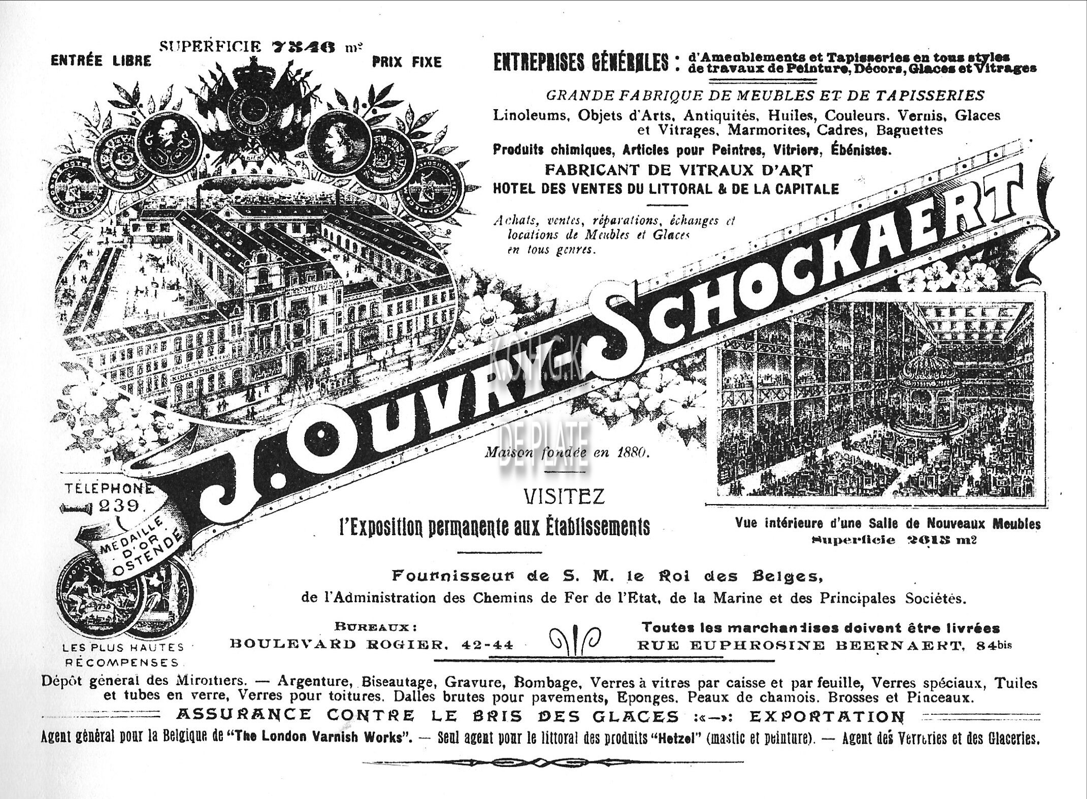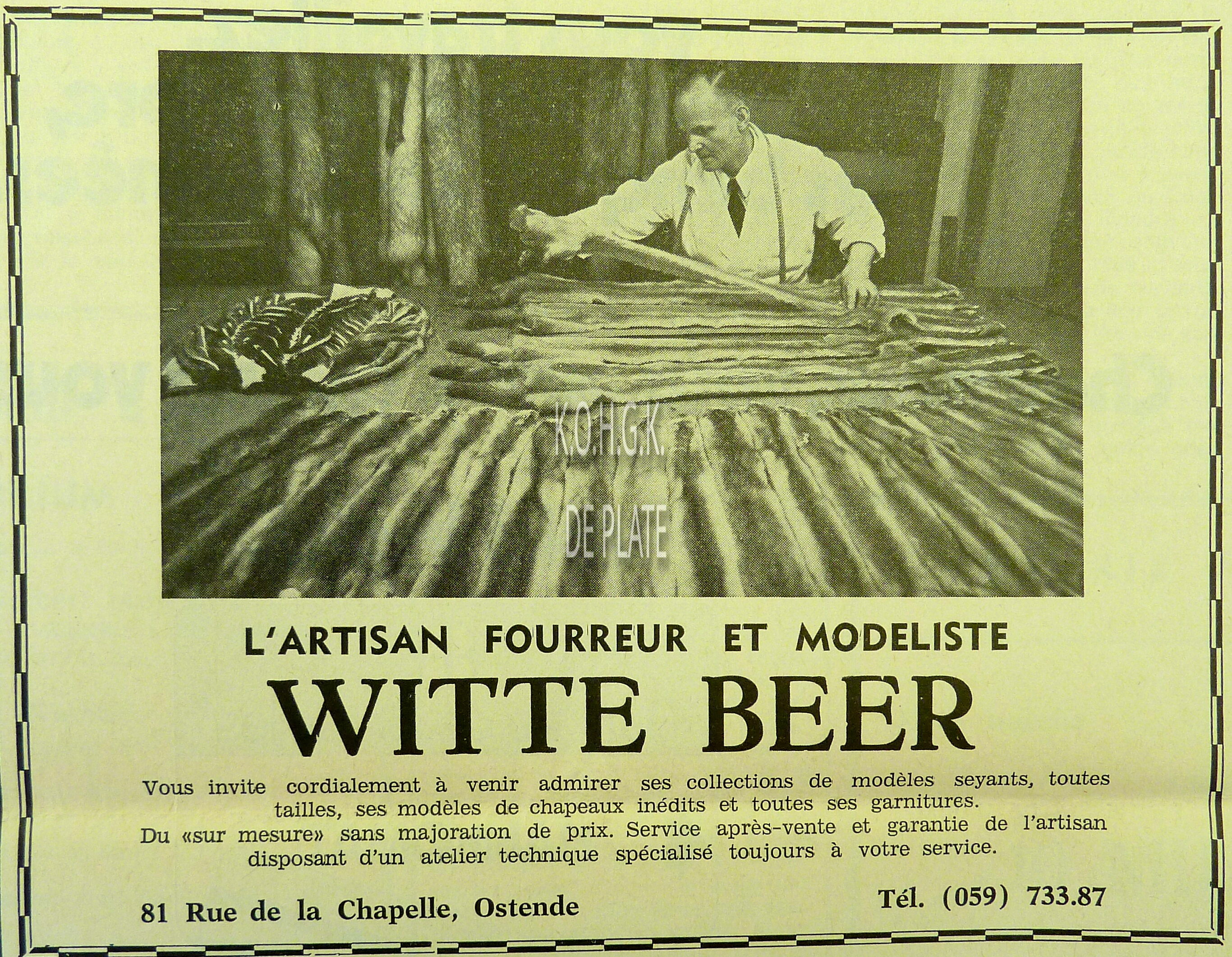 Commerce de bières. Dépositaire du Phoenix. Pilsen Munich, Bock, Bavière. Bières du pays, Stout, Pale-Ale, Schotch-Ale, Past-Op, Lambic-Gueuze, Louvain, Krieken-Lambic. Bierhandel gelegen in de Godshuizenstraat, vanaf juni 1926 Edith Cavellstraat.