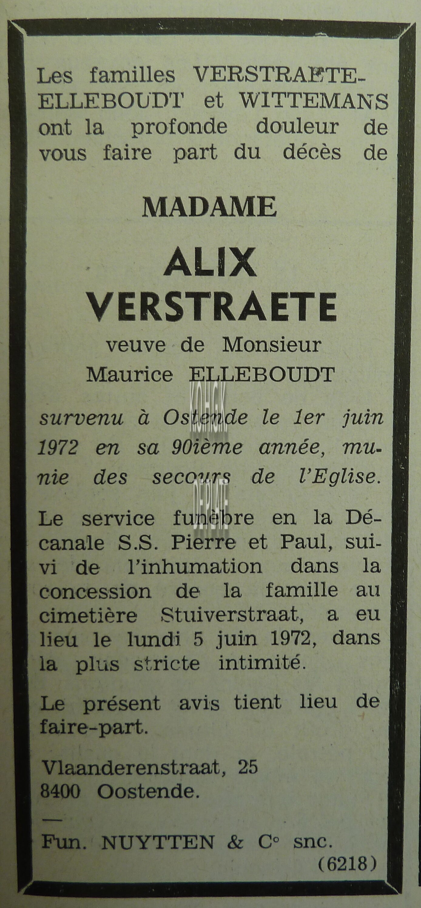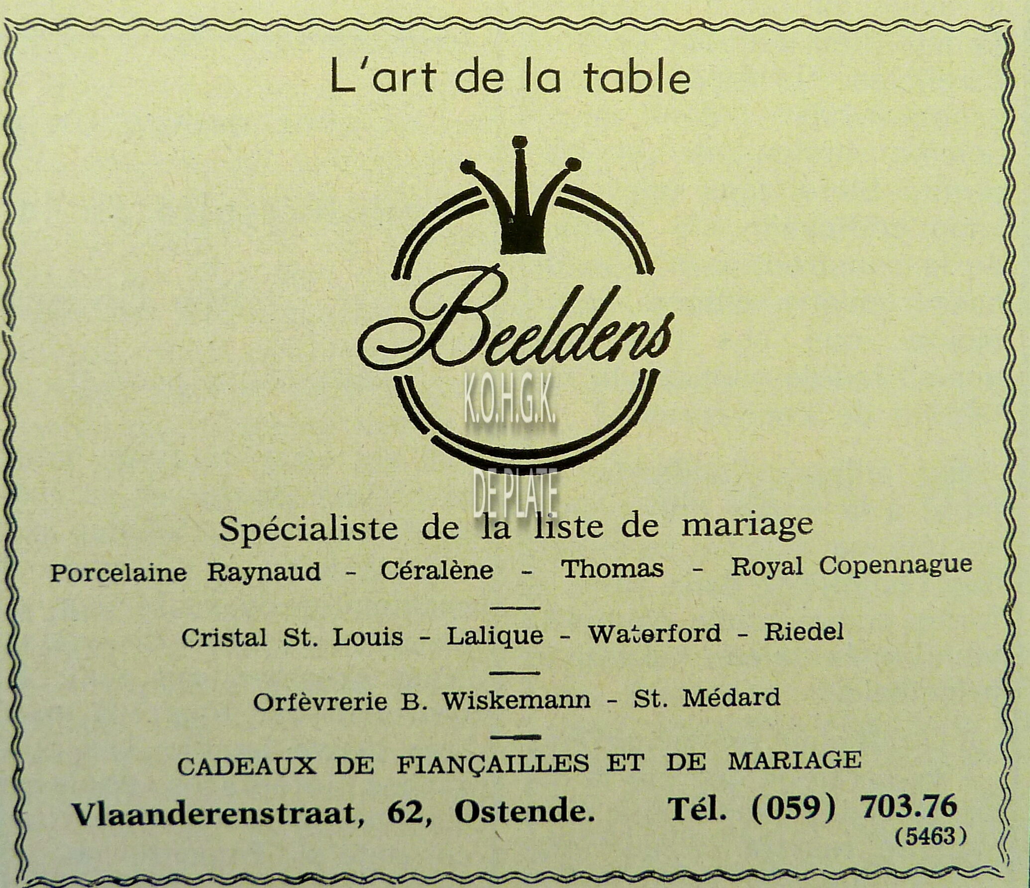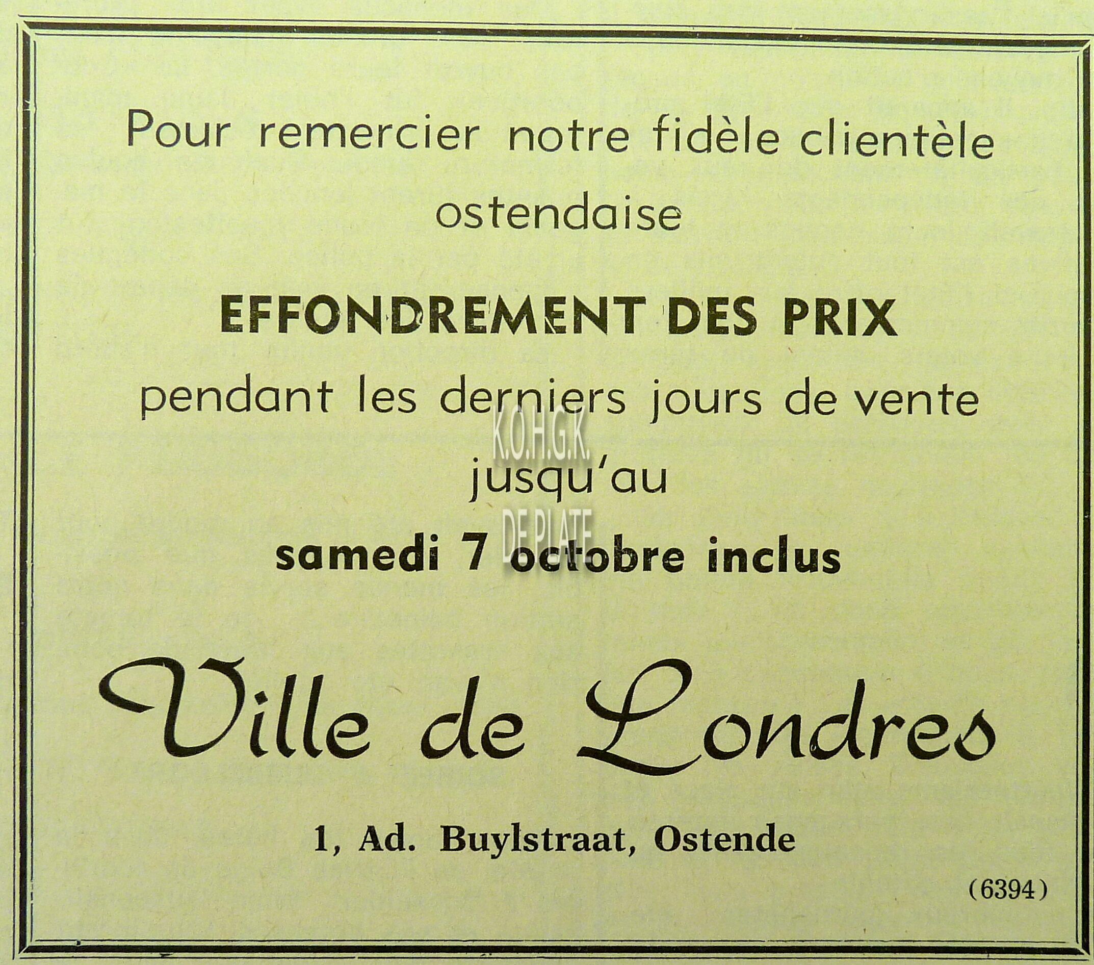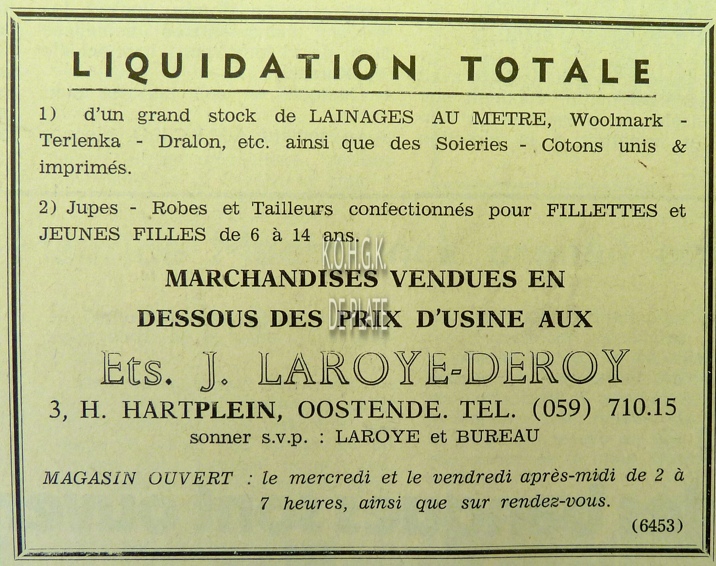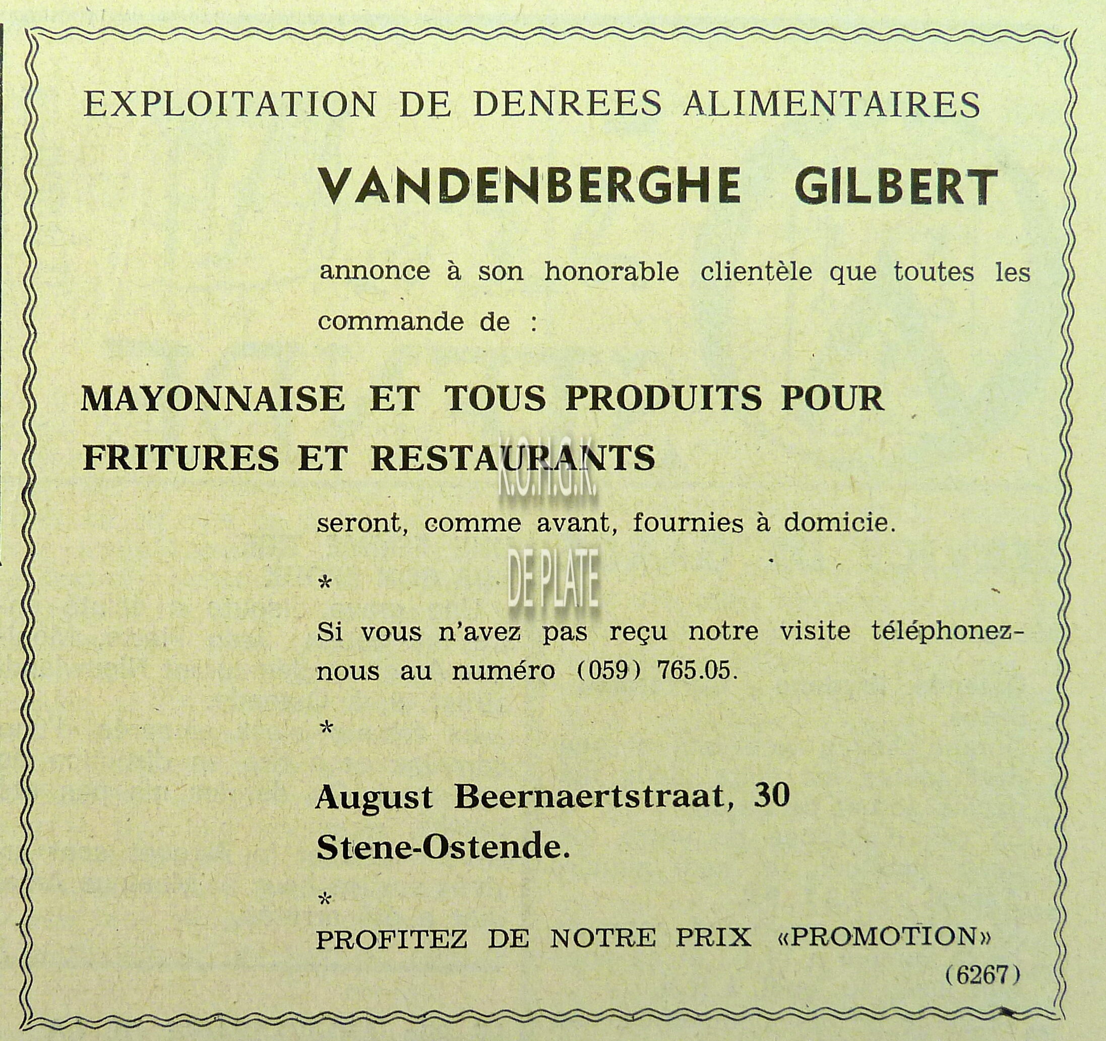 Advertentie : Fa. Kyndt-Debou. Torhoutsesteenweg 72, Oostende