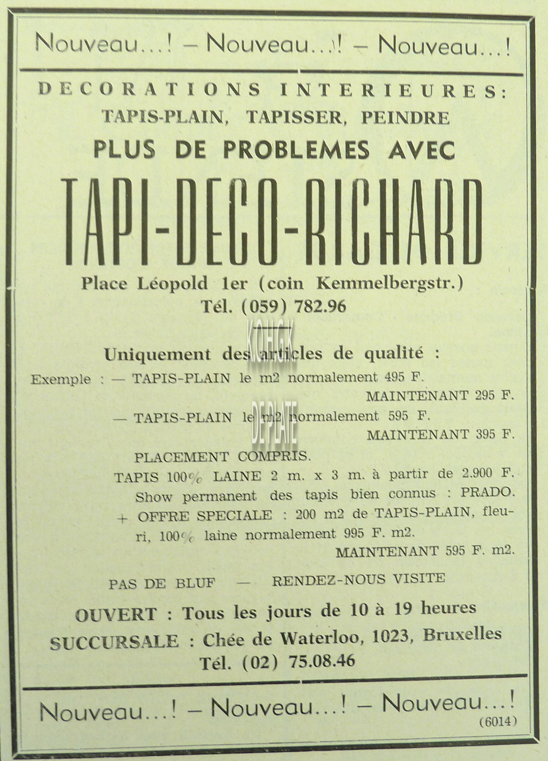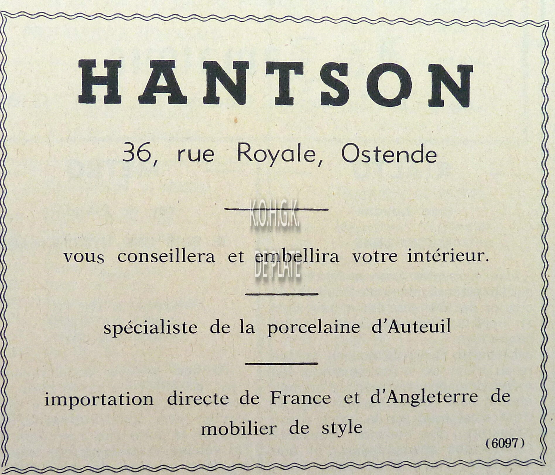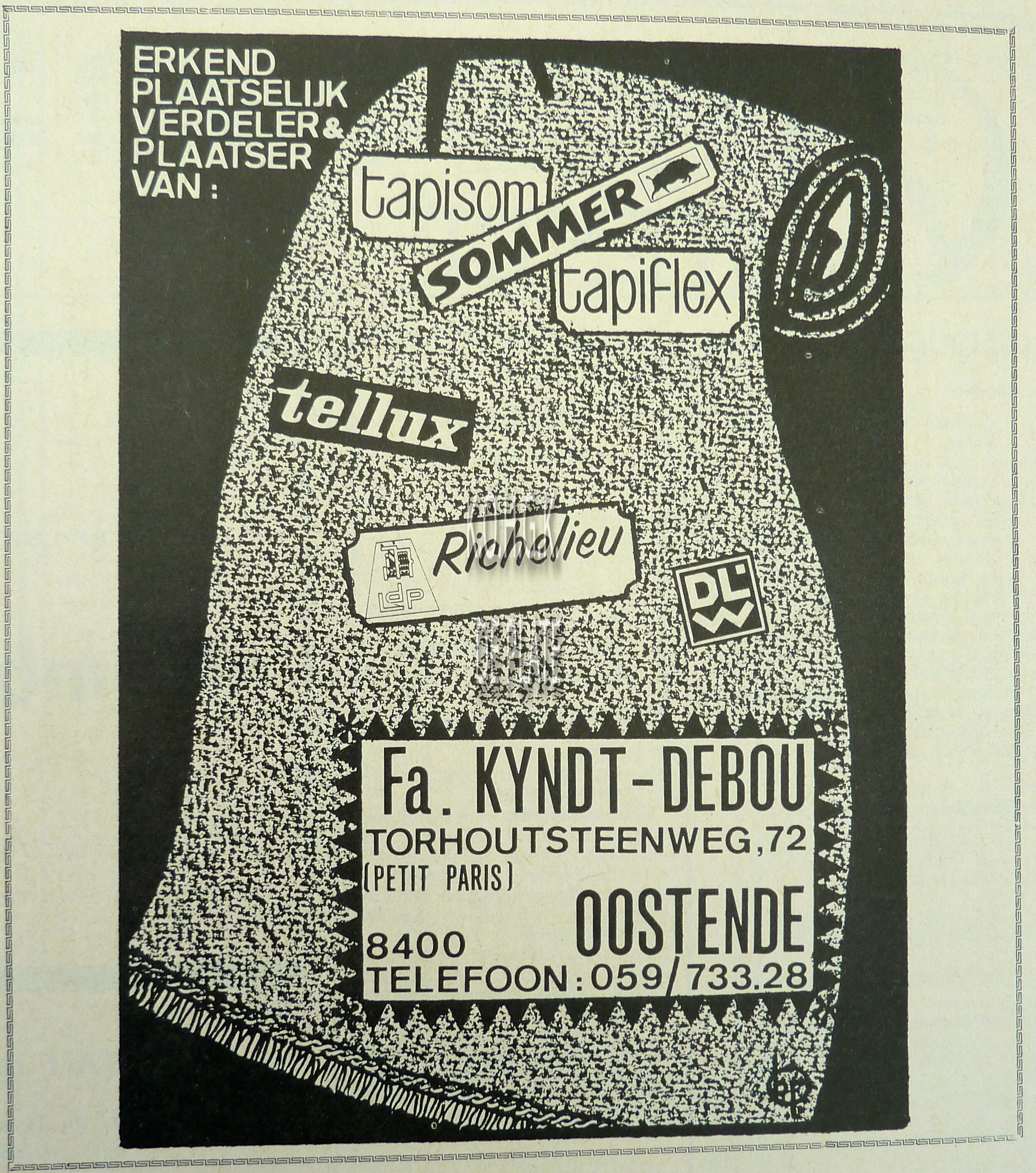 ADVERTENTIES ; HANDELKYNDT-DEBOU (TAPIJTHANDEL)TORHOUTSESTEENWEG