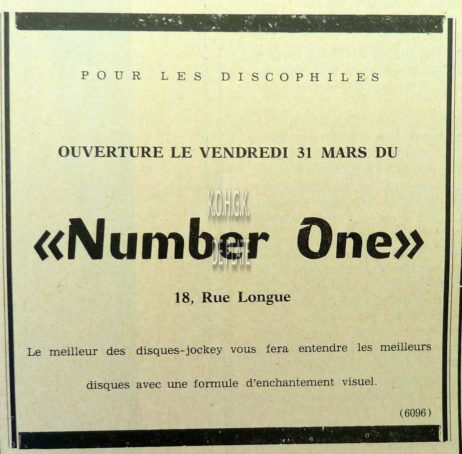 Advertentie : Number One. Ouverture le 31 mars. 18, Rue Longue.