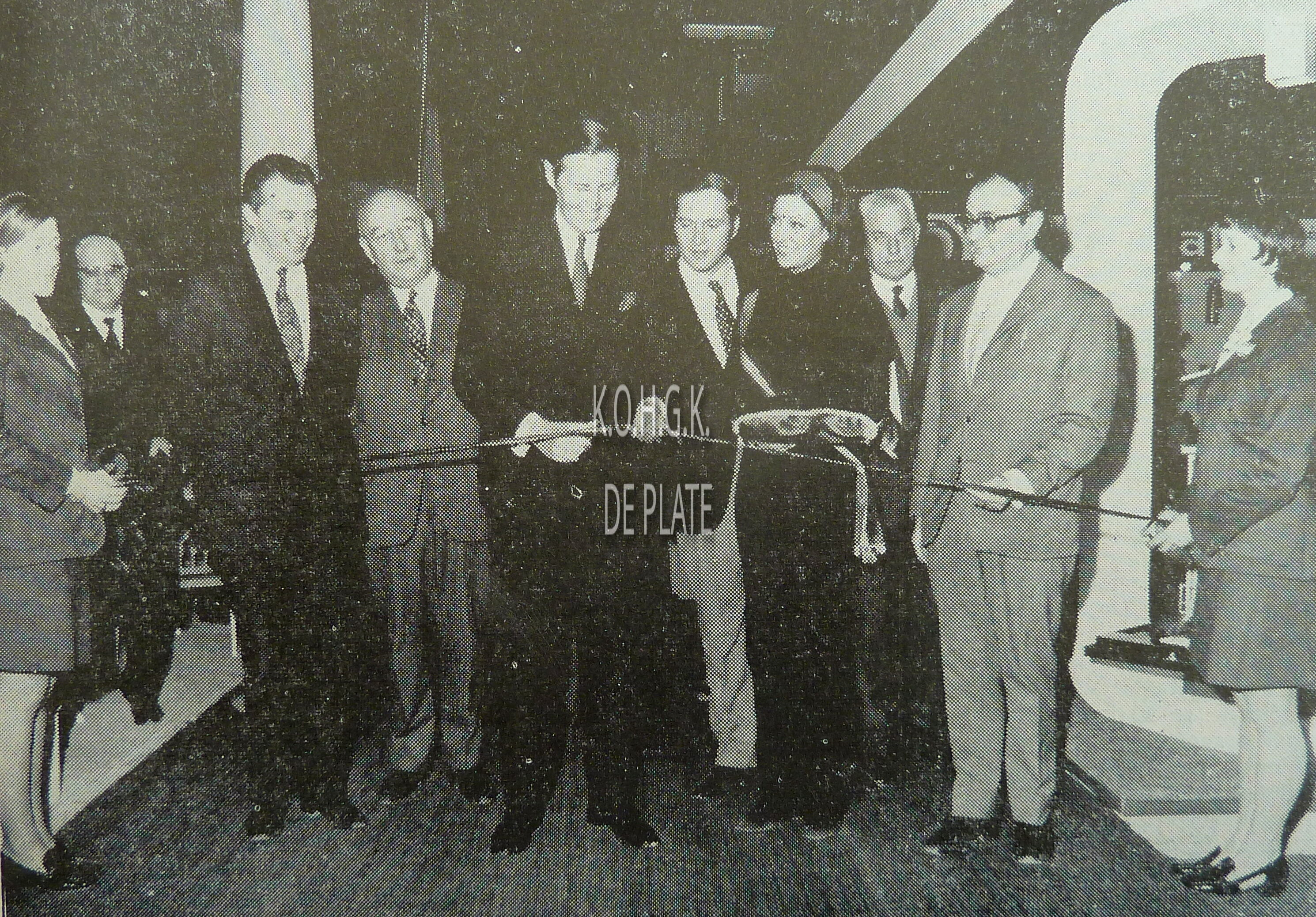 Foto : Openening van de vakbeurs door Leo Tindemans, minister van Landbouw en Middenstand. Rechts naast hem Jan Piers, burgemeester en uiterst rechts Henri Dumarey, schepen van o.a. haven, de vismijn. Uiterst links Porsper Vandenberghe en naast hem Pierre van Outryve d'Ydewalle, gouverneur van de Provincie West-Vlaanderen.