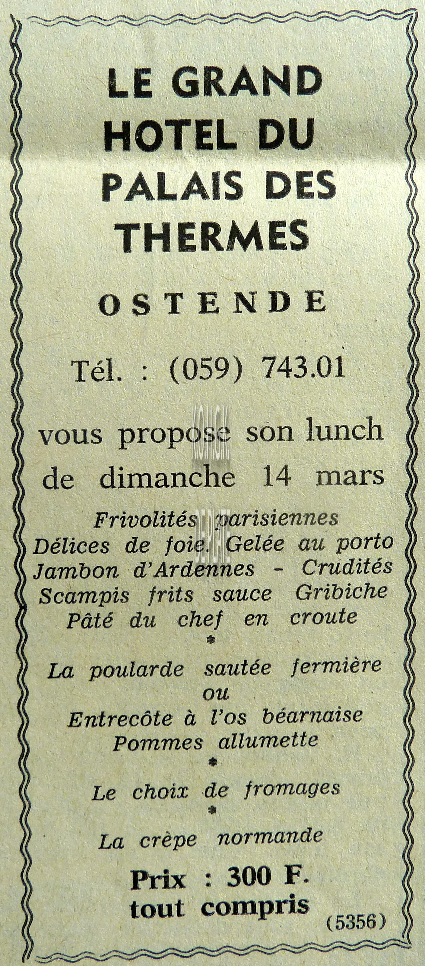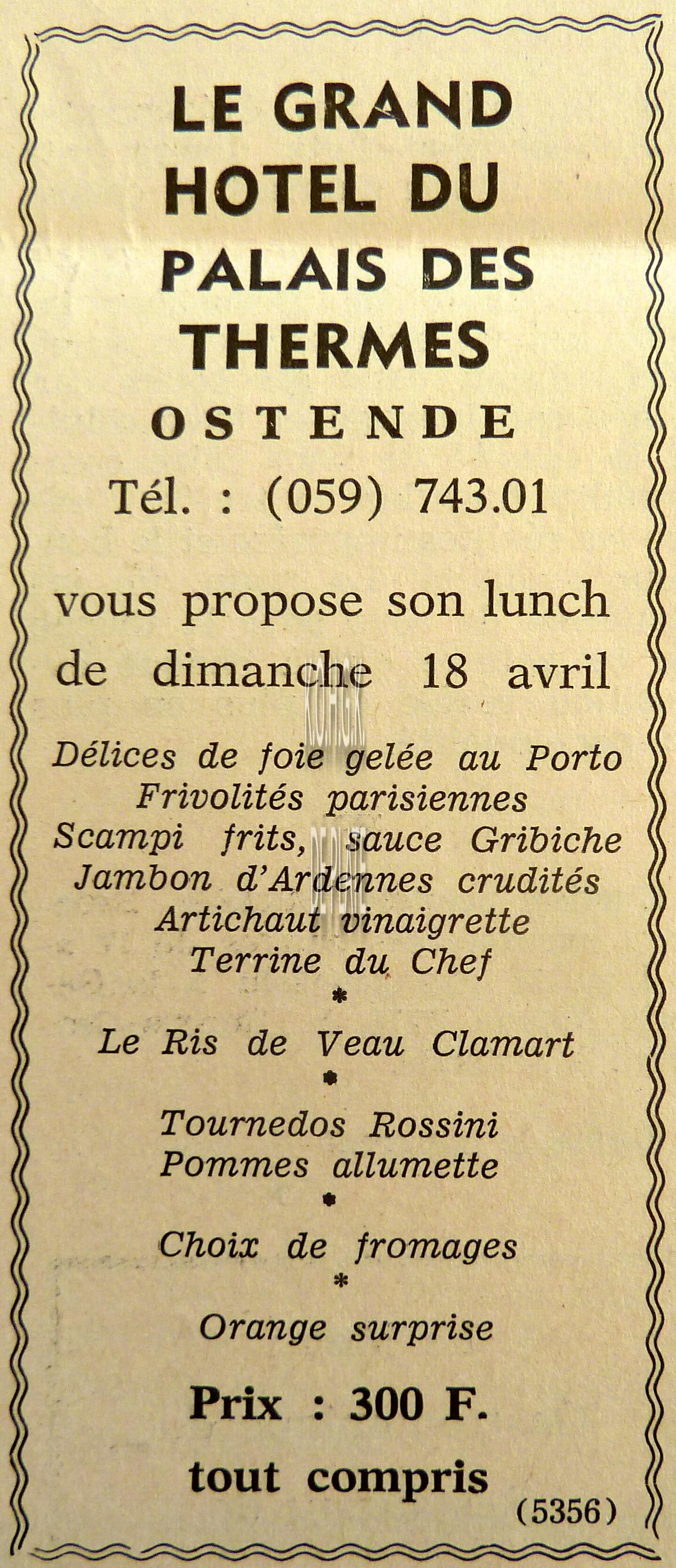 Advertentie : Restaurant Lusitania. Visserskaai 35, Oostende