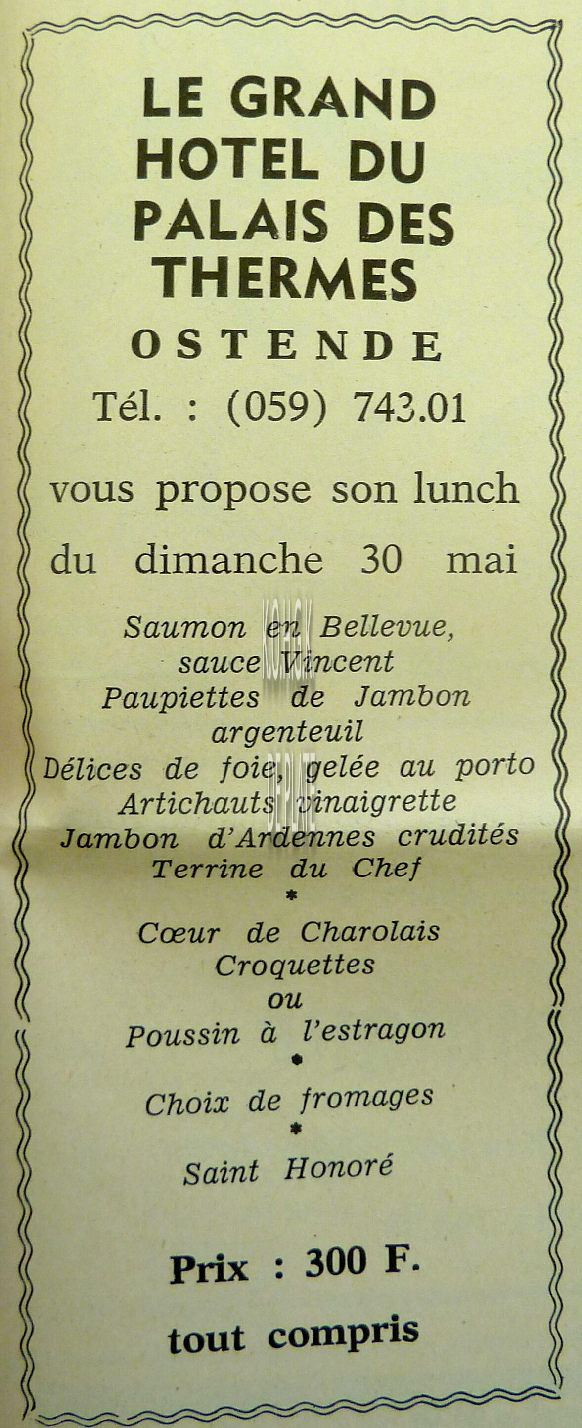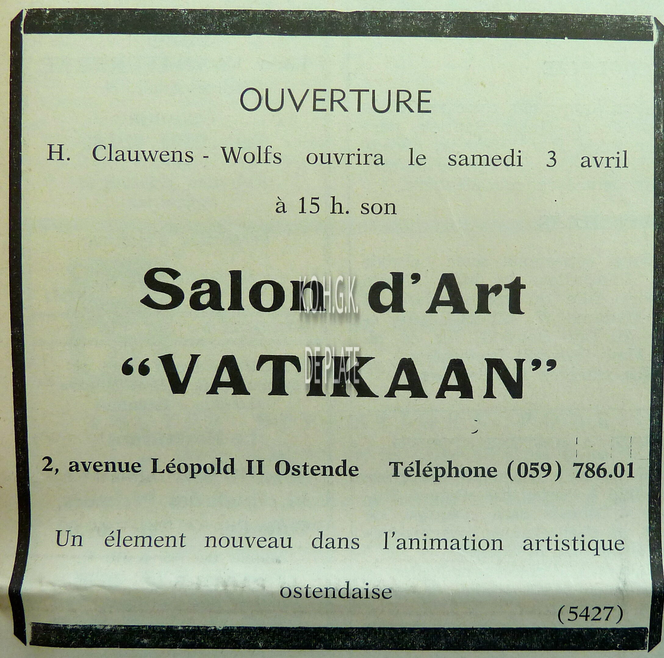 Advertentie : Ouverture salon d'art "Vatikaan"". 2, Avenue Léopold II, Ostende