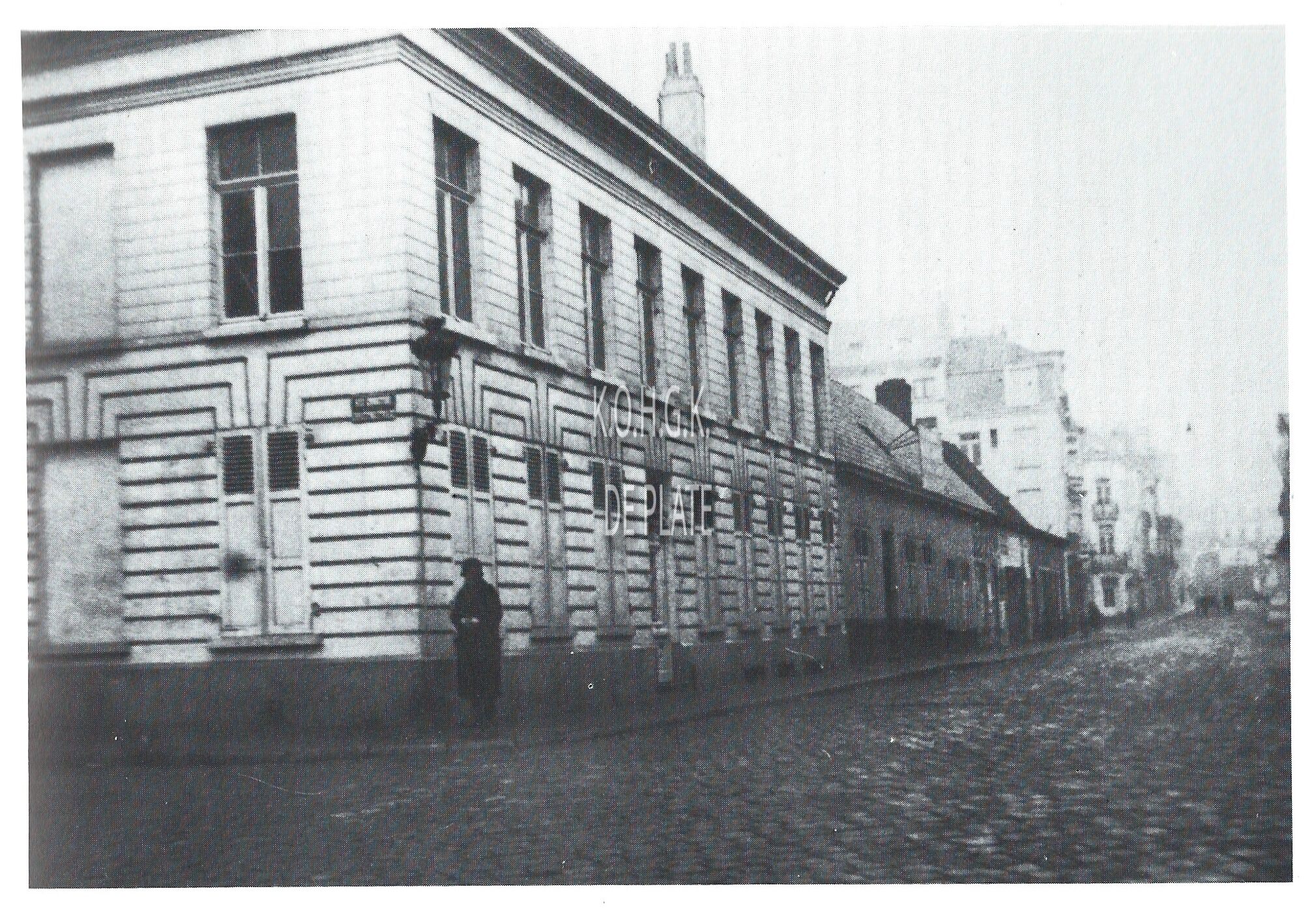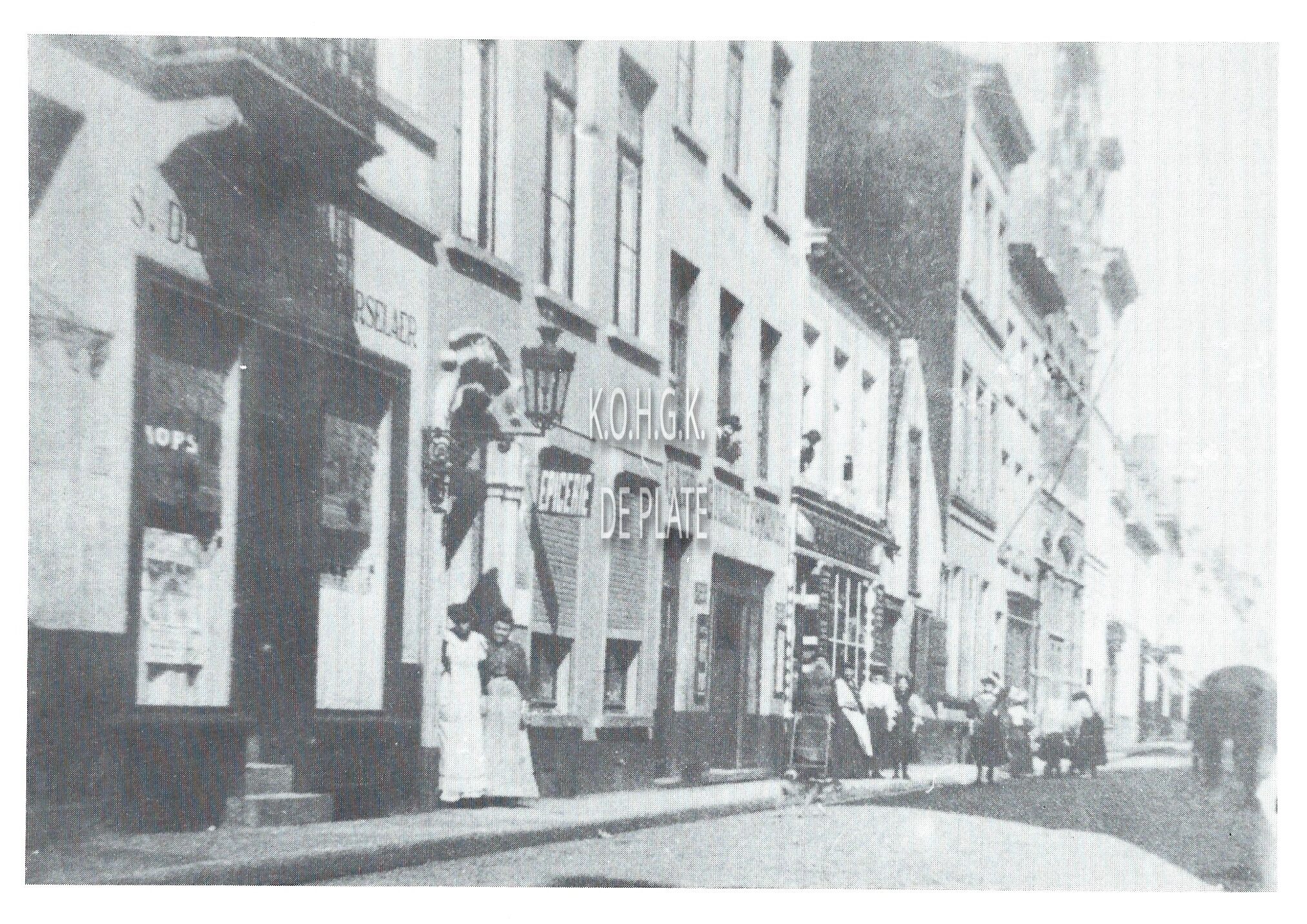 Het hoekhuis was het bureau van de plaatscommandant en tevens de woonst van de commandant van de genie. Op de plaats van de kleine huisjes was cinema-complex Rialto.