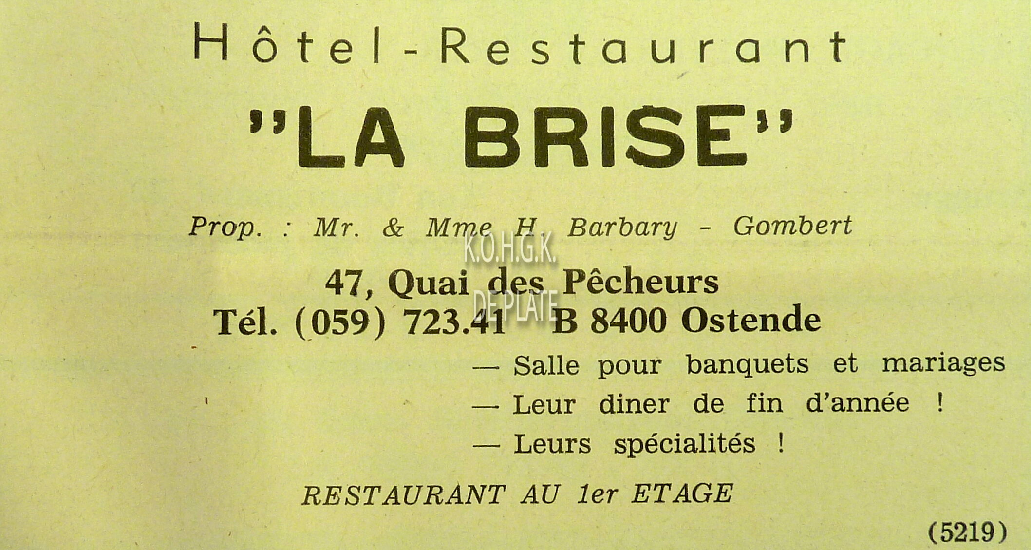 Advertentie : Hôtel-Restaurant "La Brise". 47, Quai des Pêcheurs, Ostende