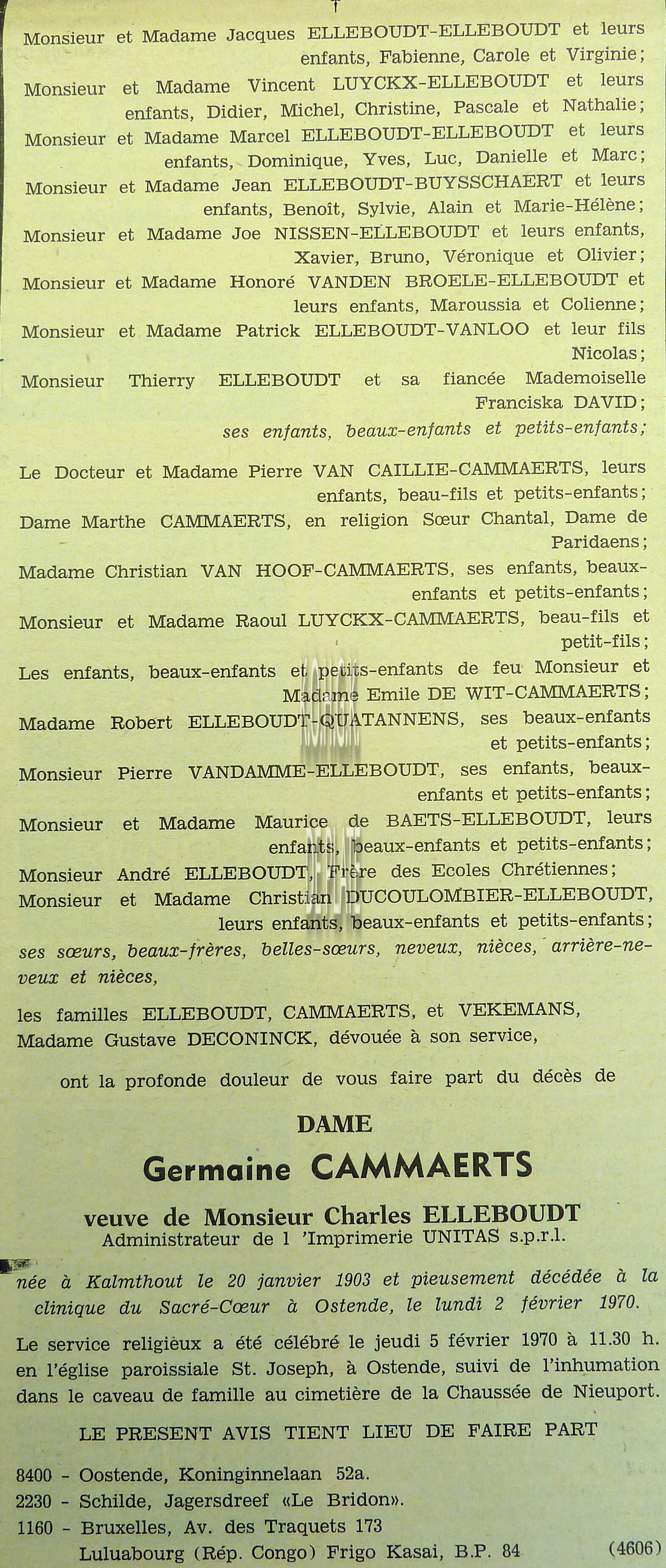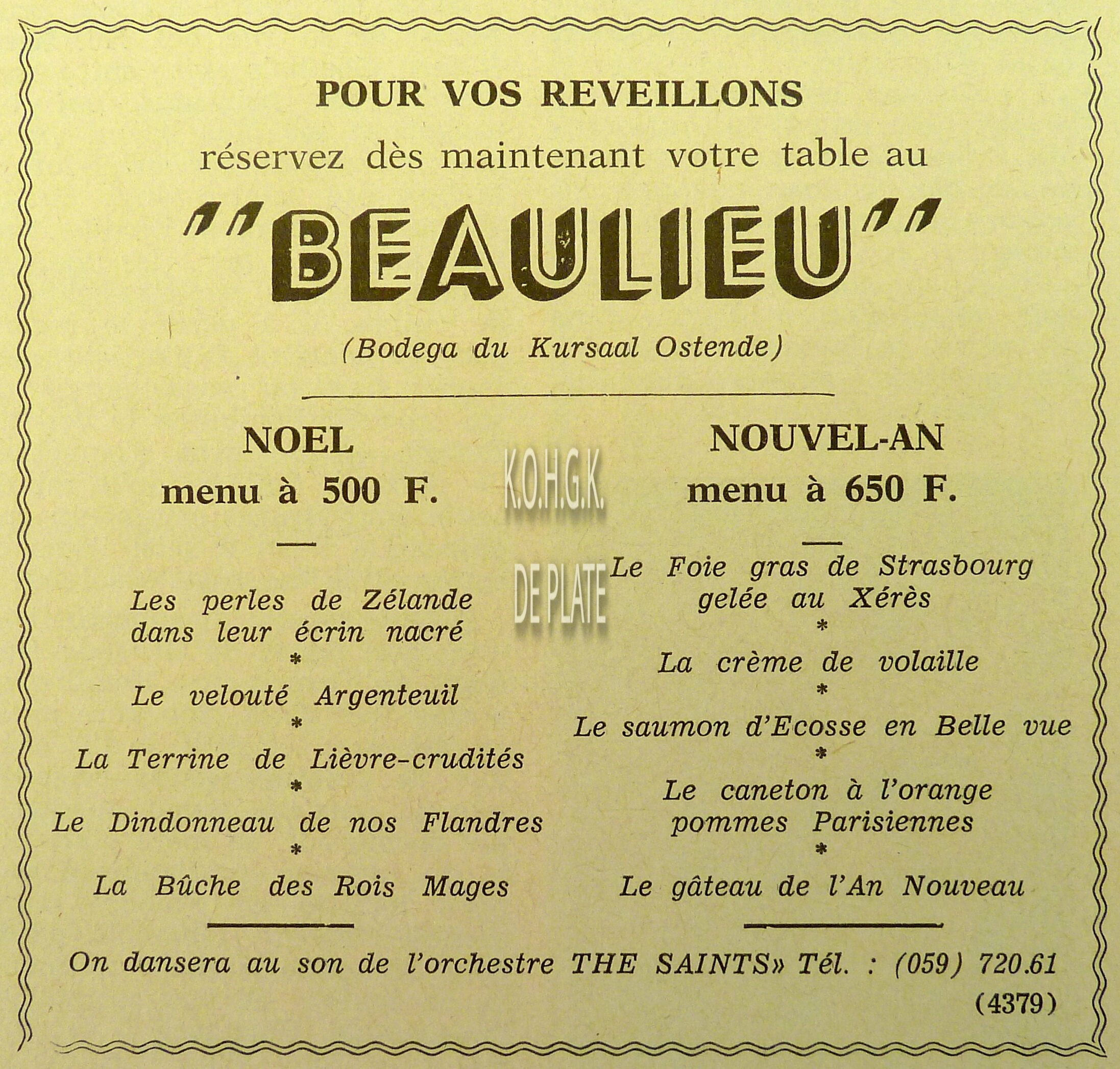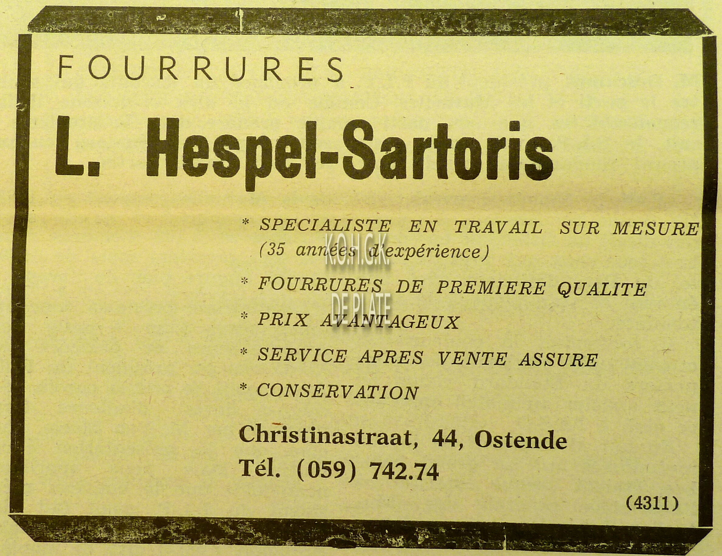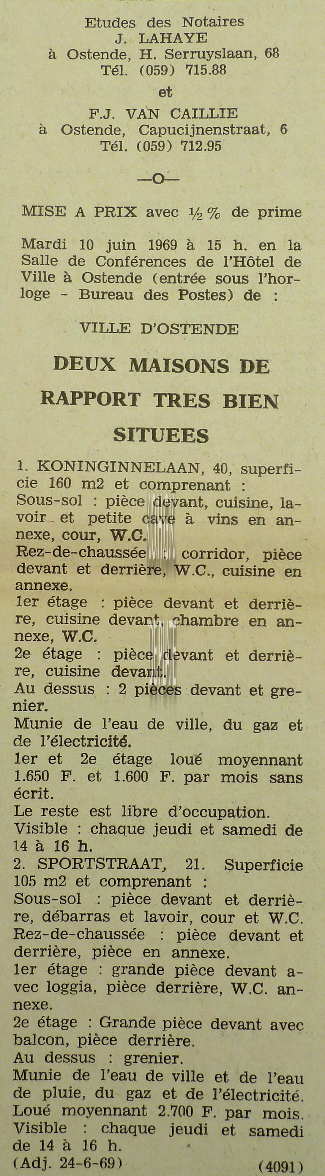 Advertentie : Etude du notaire Maurice Quaghebeur. Vente publique. Grand local commercial dénommé "Hotel de Flandre". A l'angle de la Place Leopold I, la chaussée de Thourout et du Boulevard Rogier 1.