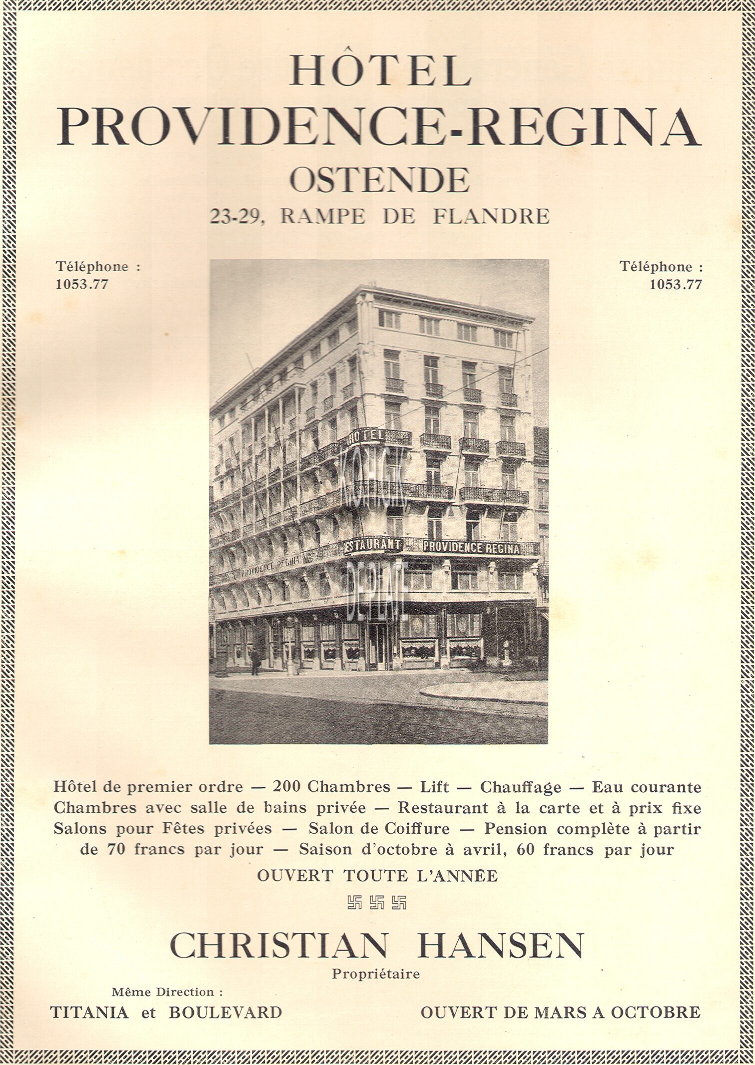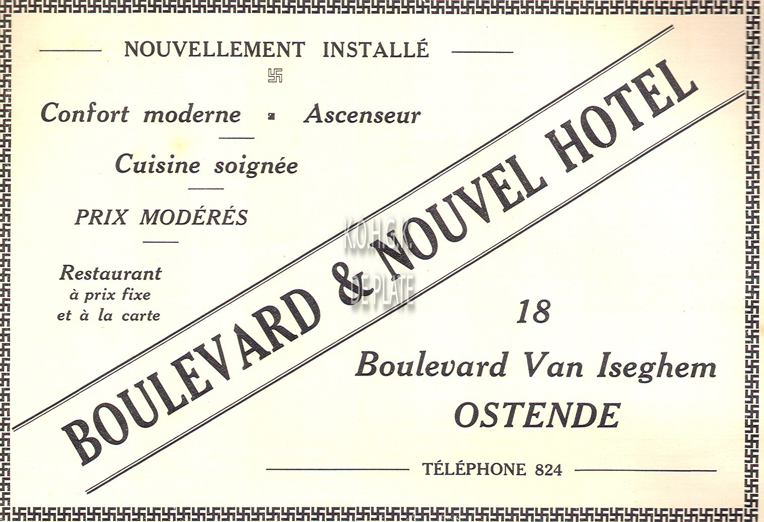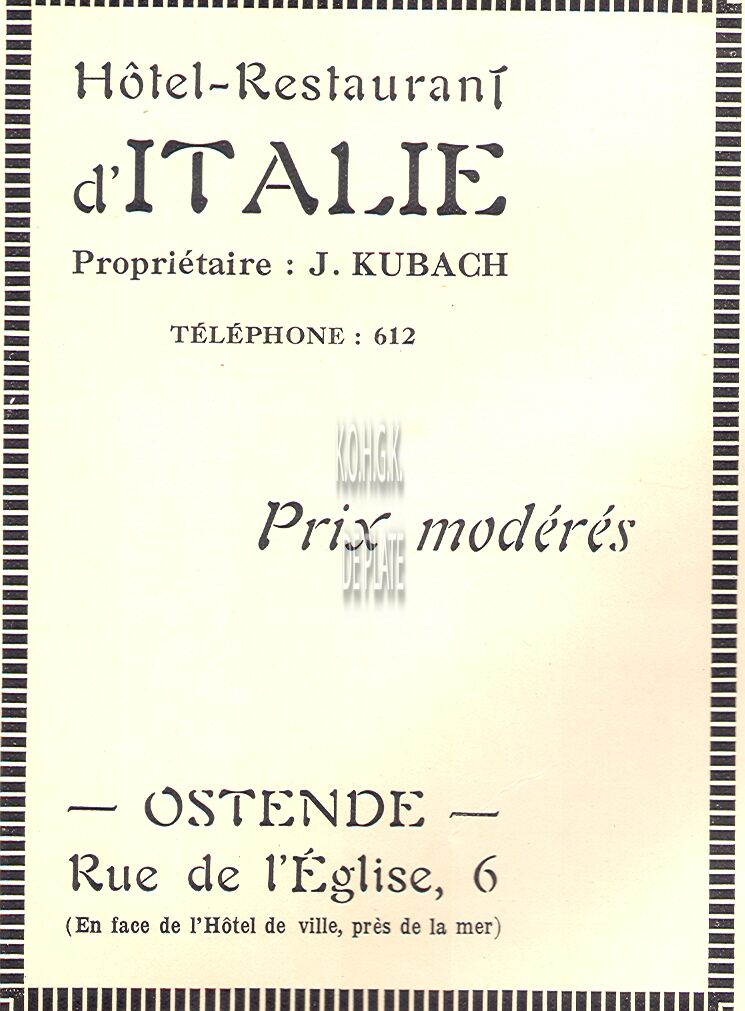 Advertentie : Hotel de la Bourse. Kerkstraat 12