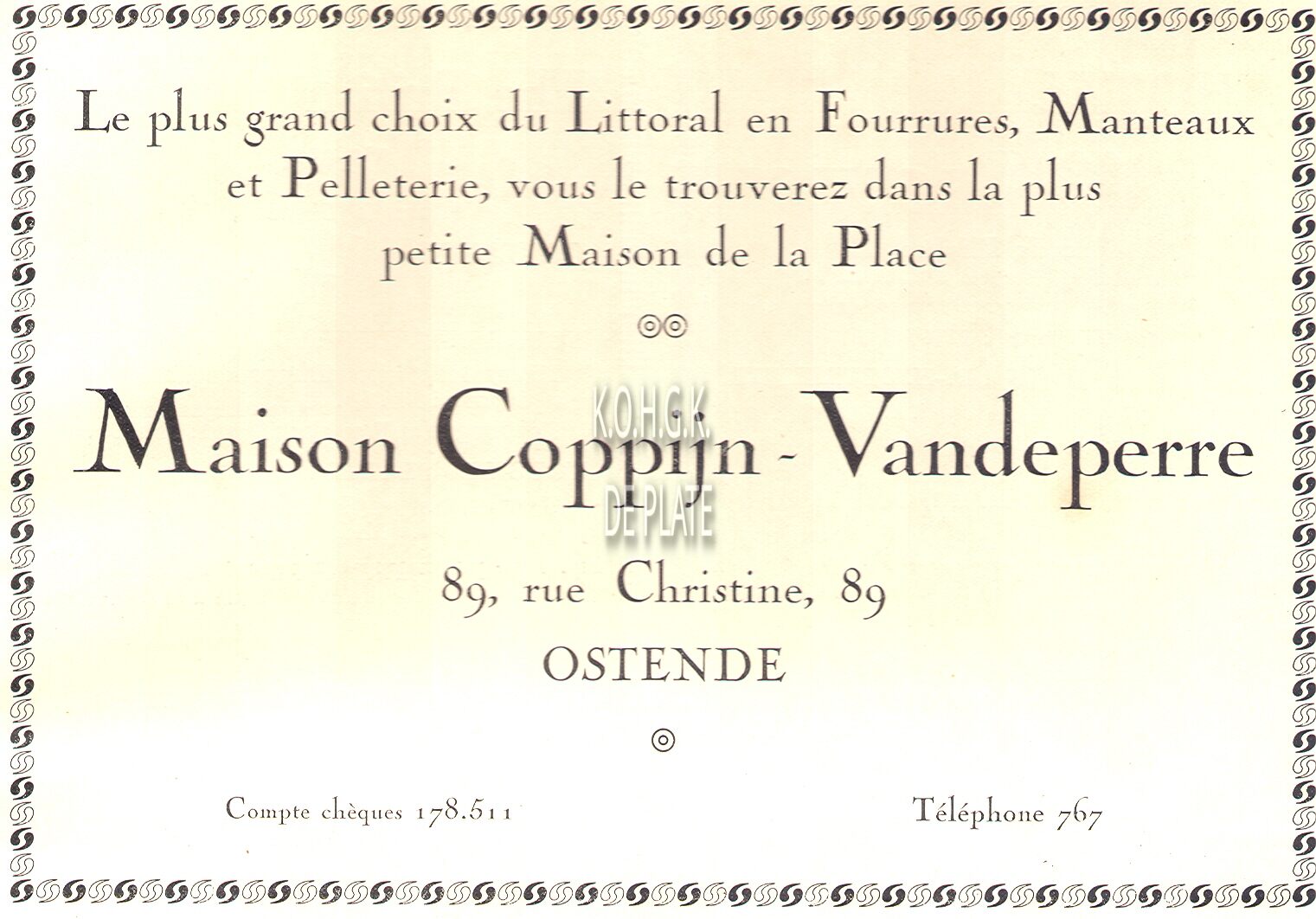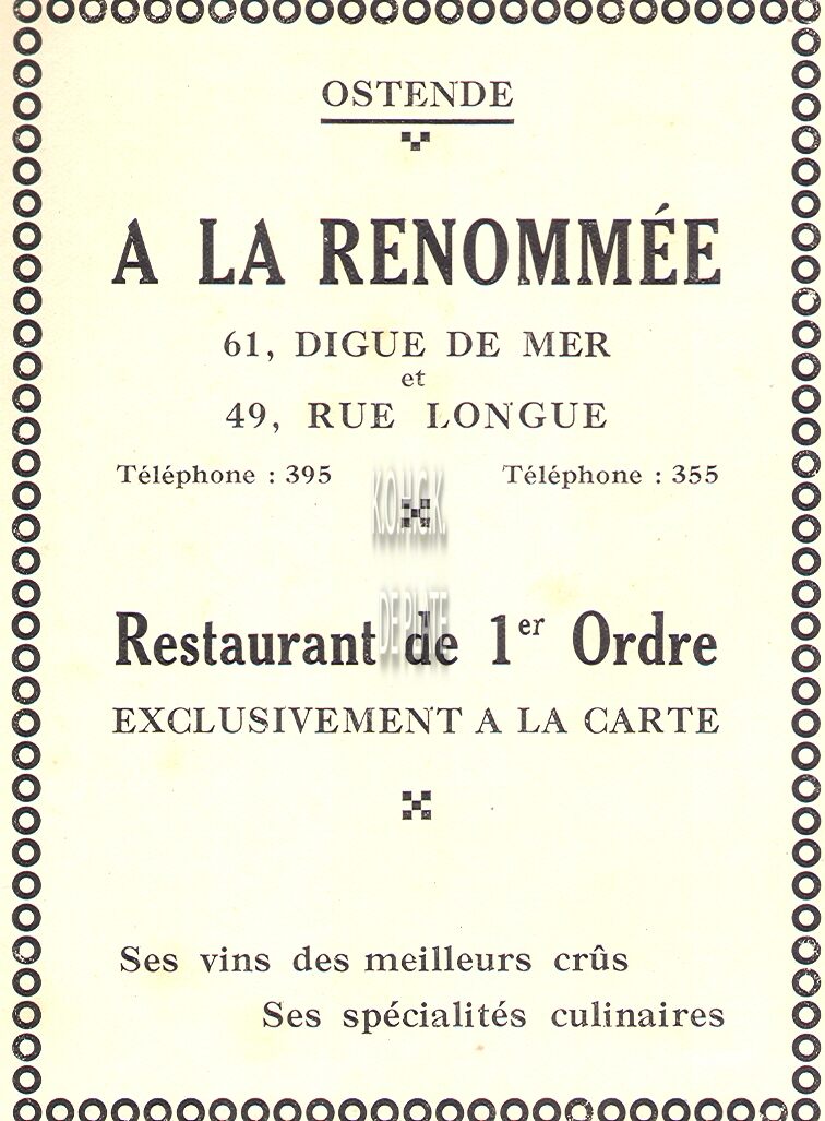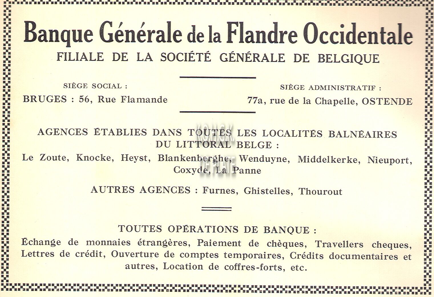 Advertentie : Banque d'Ostende et du Littoral. Wapenplein 3