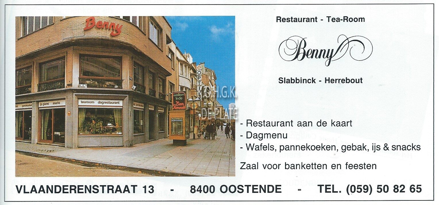 Advertentie : Benny. Restaurant - Tea-Room. Vlaanderenstraat 13, Oostende