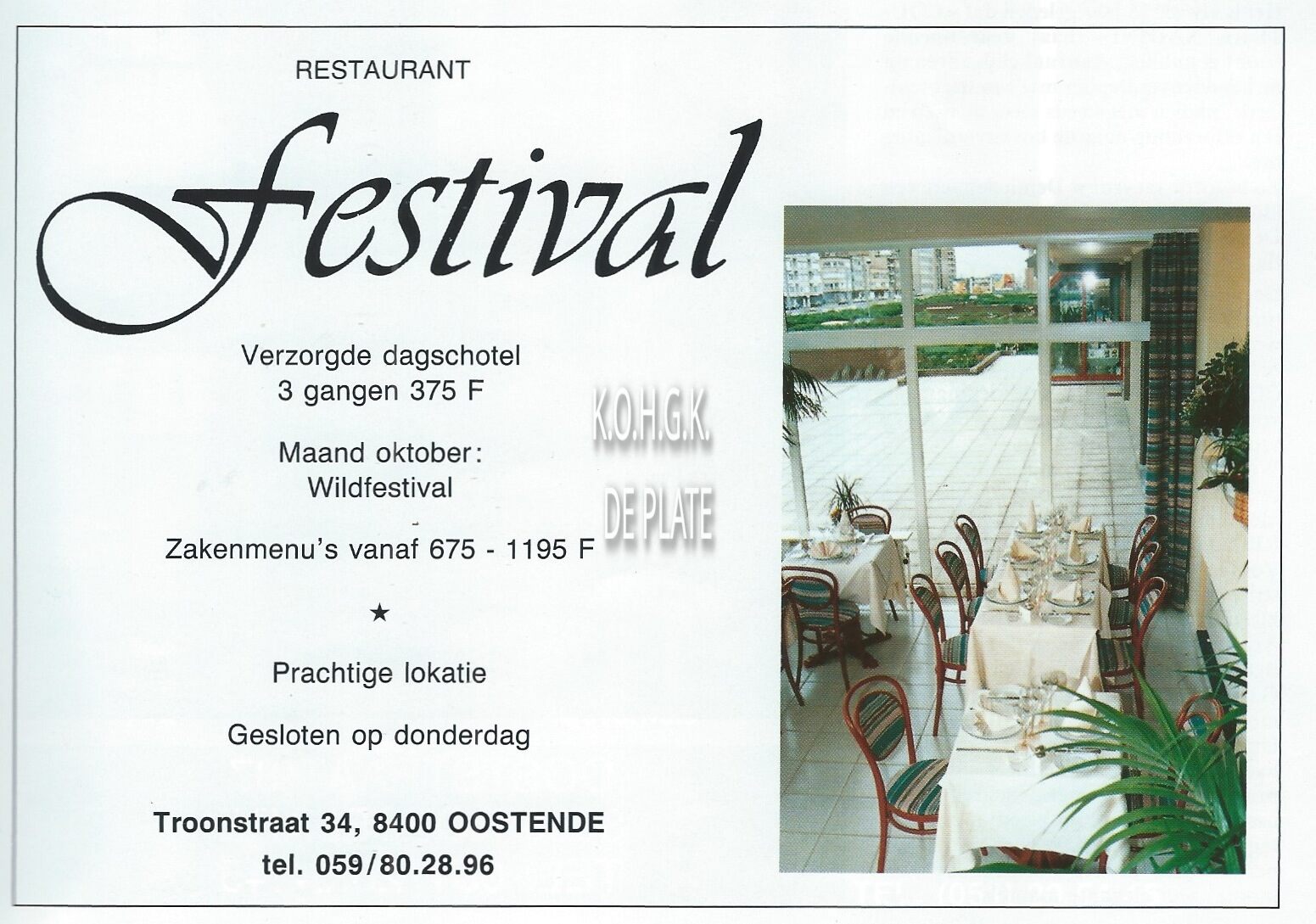 Advertentie : 't Schuurke. Restaurant. Voorhavenlaan 20, Oostende