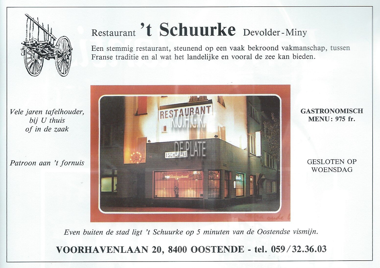 ADVERTENTIES ; HORECA'T SCHUURKE (RESTAURANT)RESTAURANTSDEVOLDER-MINY (RESTAURANTHOUDERS)VOORHAVENLAAN