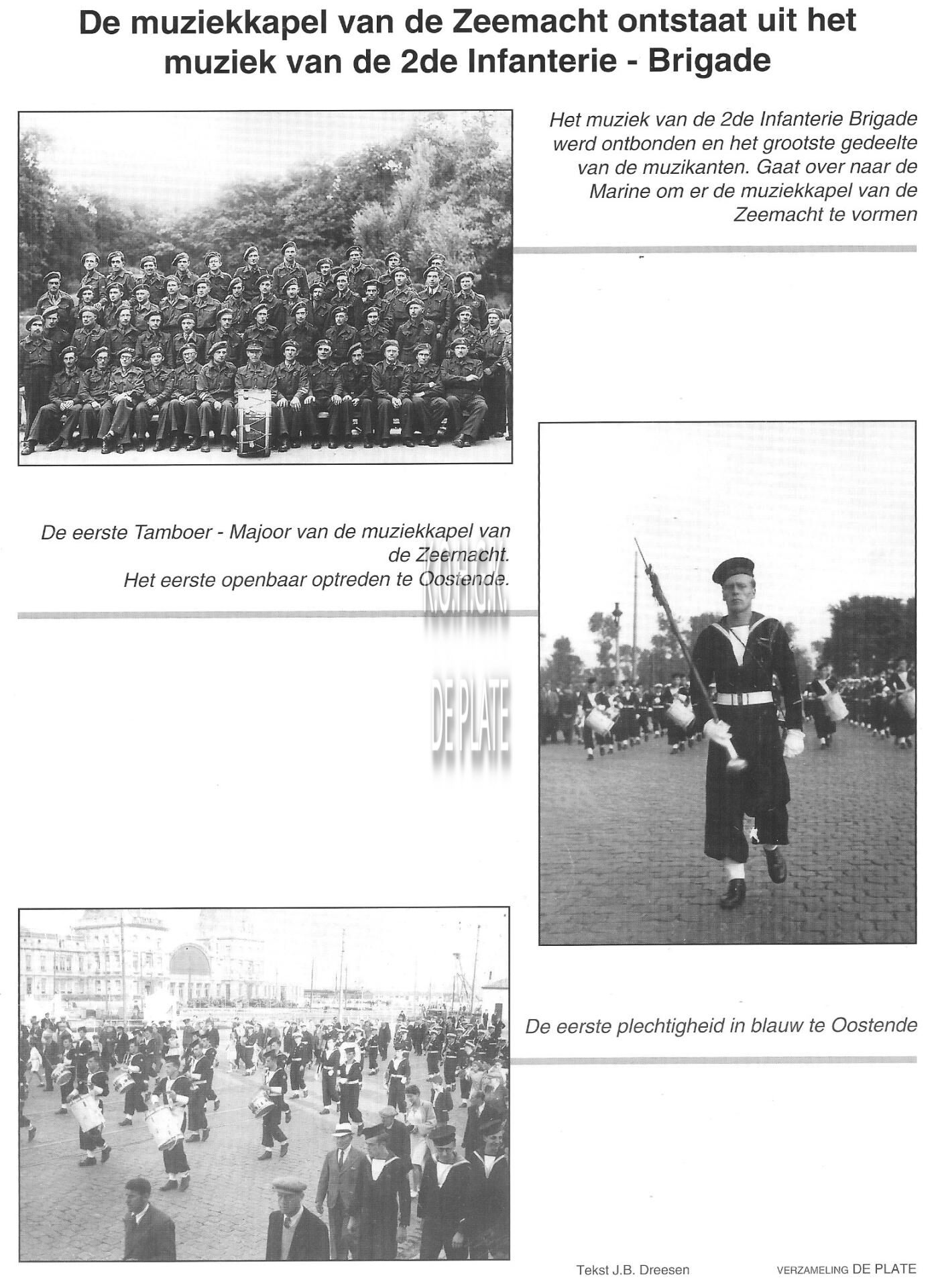 Uit de beginjaren van de Marine te Oostende : de muziekkapel van de Zeemacht ontstaan uit het muziek van de 2de infanterie-brigade. - 3 foto's uit het archief De Plate