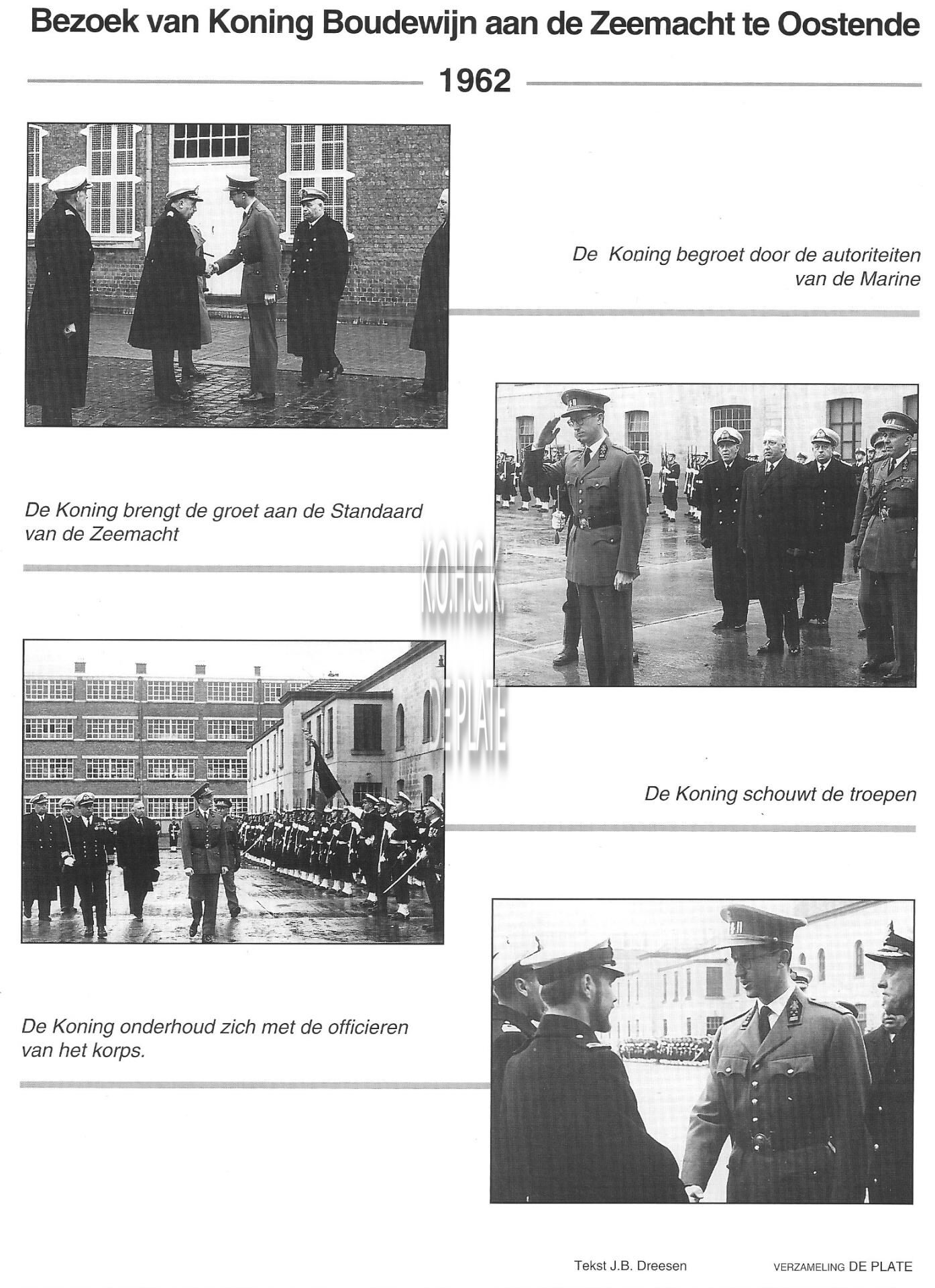 Uit de beginjaren van de Marine te Oostende : bezoek van koning Boudewijn aan de Zeemacht te Oostende 1962. - 4 foto's uit de archief De Plate