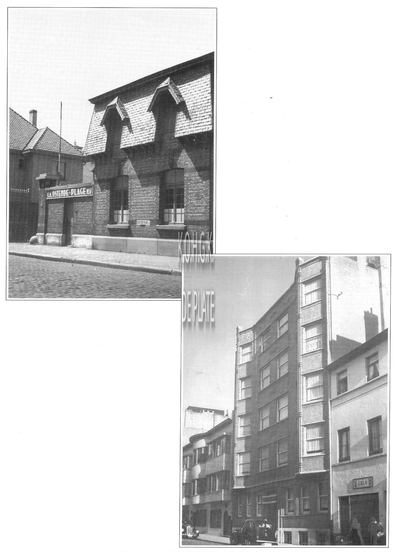 3 foto's : (1) De Albert I-promenade met de hoek van de Kapucijnenstraat ; (2) De Albert I-promenade vanaf de Kursaal richting het Koninklijk Chalet met zicht op het afgebroken "Hotel de la Plage" en (3) Het Zeeheldenplein