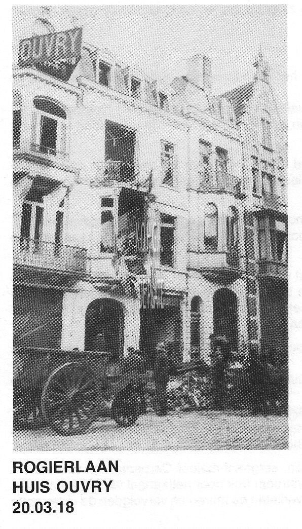 Wereldoorlog 1914-1918 : Ooststraat, huis Eug. Rau ; Kerkstraat, huis Elleboudt ; Rogierlaan, huis Ouvry (1918) ; SS. Petrus en Pauluskerk. - 4 foto's uit de verzameling Stadsarchief (Oostende)