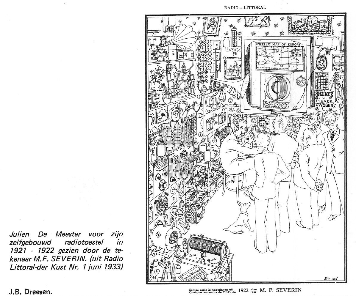 60 jaar radio te Oostende. - 1 foto (1921-1922) van Julien De Meester uit de verzameling mevrouw A. Vandermeulen-De Meester en 1 afbeelding van tekenaar M.F. Severin