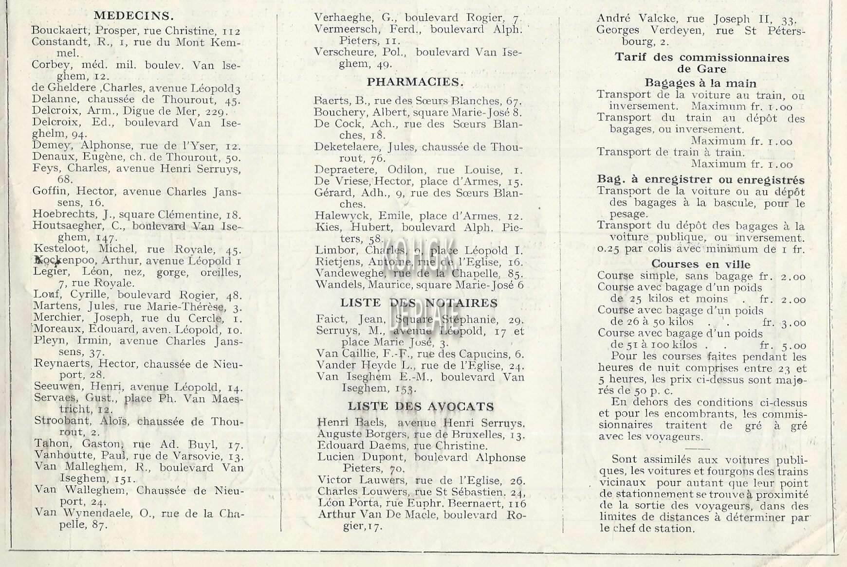 Advertentie : Tarif des bains de mer