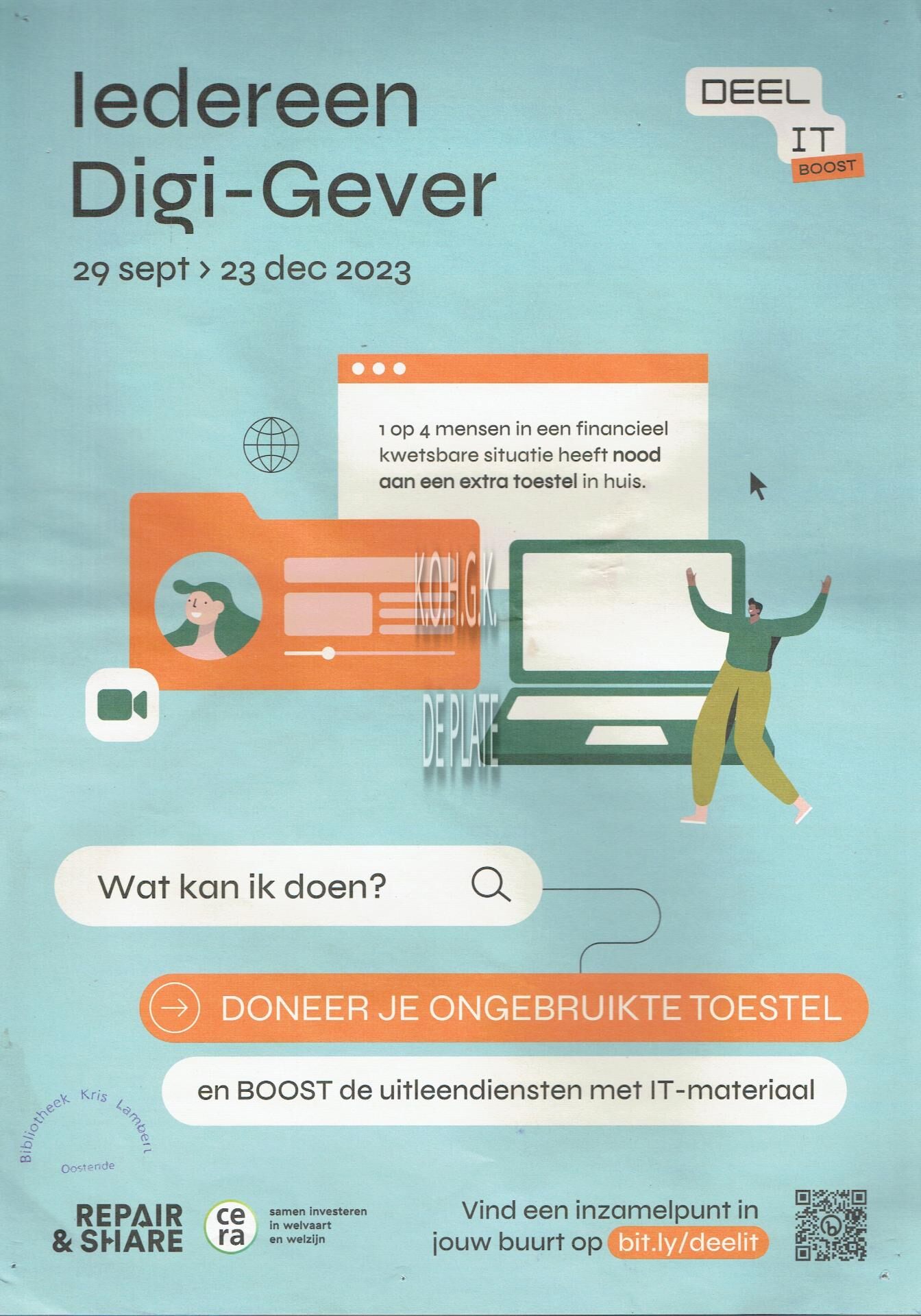 Formaat : 42 x 30 cm. - 1 op 4 mensen in een financieel kwetsbare situatie heeft nood aan een extra toestel in huis. Doneer je ongebruikte toestel en BOOST de uitleendiensten met IT-materiaal.