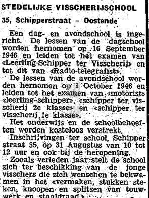 Advertentie : Heropening van de Scala op 29 juni 1946. Van Iseghemlaan 67, Oostende