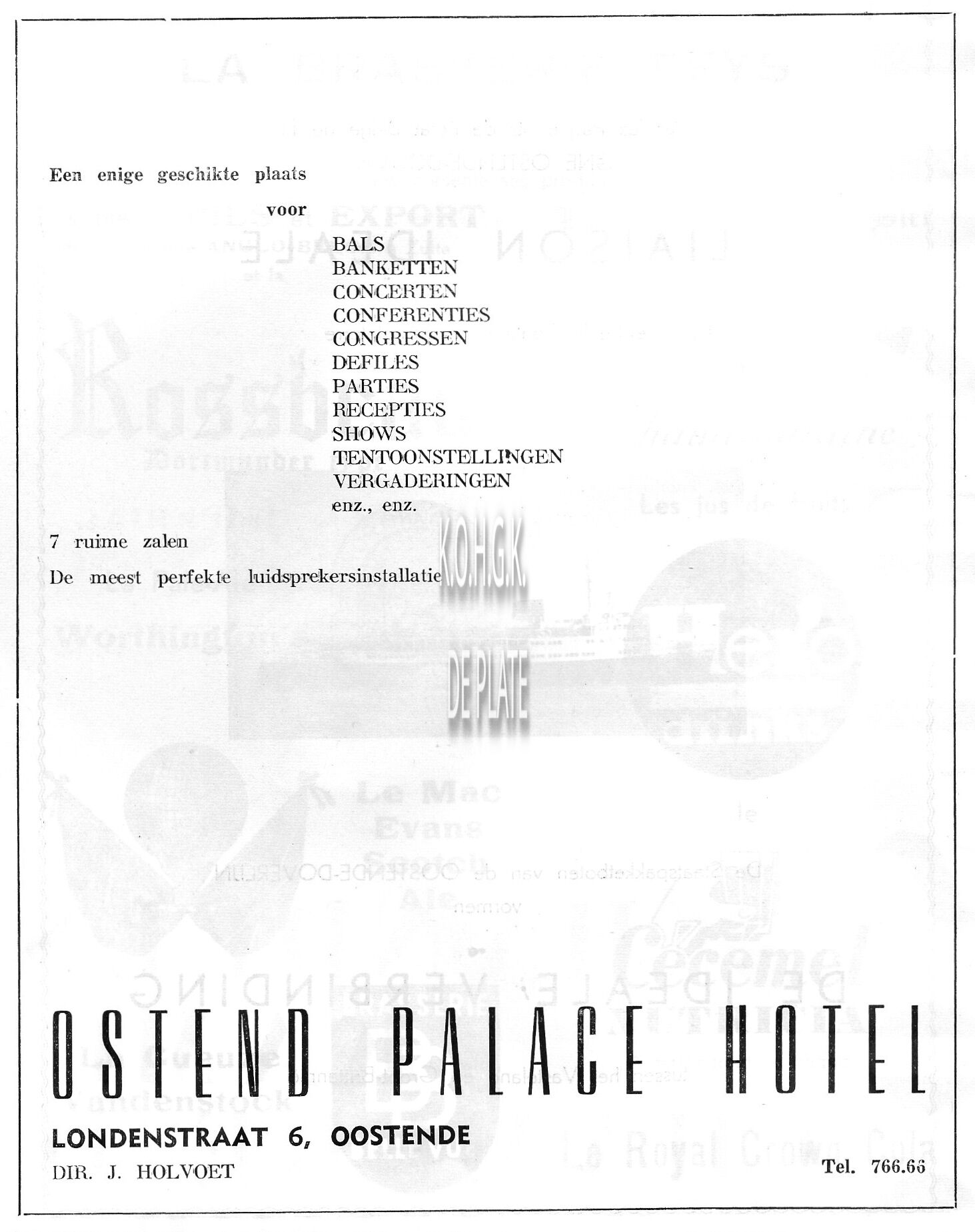 Trefwoorden ADVERTENTIES ; HORECAOSTEND PALACE HOTELHOLVOET J. (HOTELIER)LONDENSTRAAT