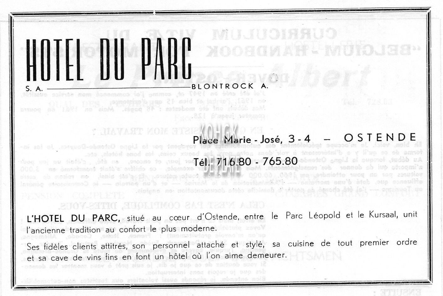 Advertentie ; Ostend Palace Hotel. Londenstraat 6, Oostende