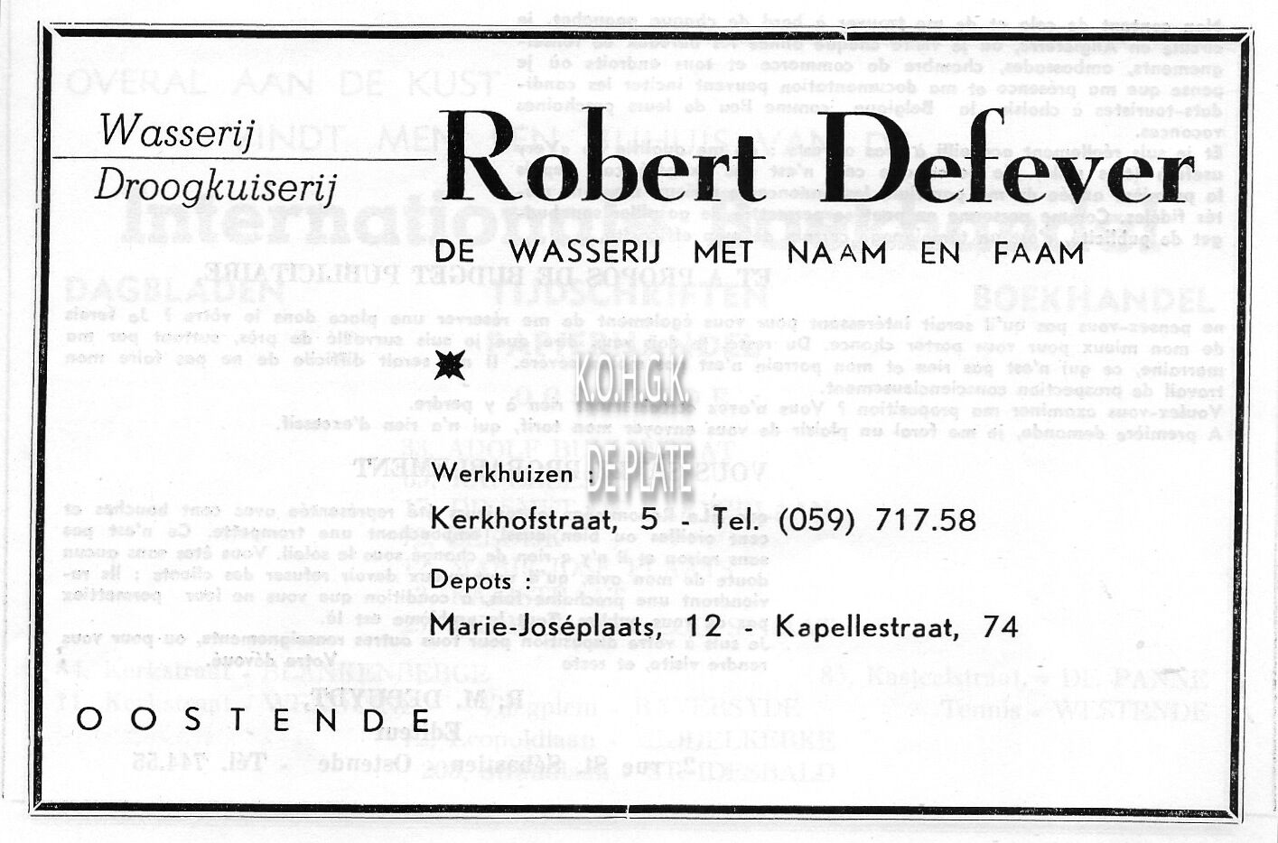 Advertentie : Oostendse Houtmaatschappij. Vergunningenstraat, Oostende