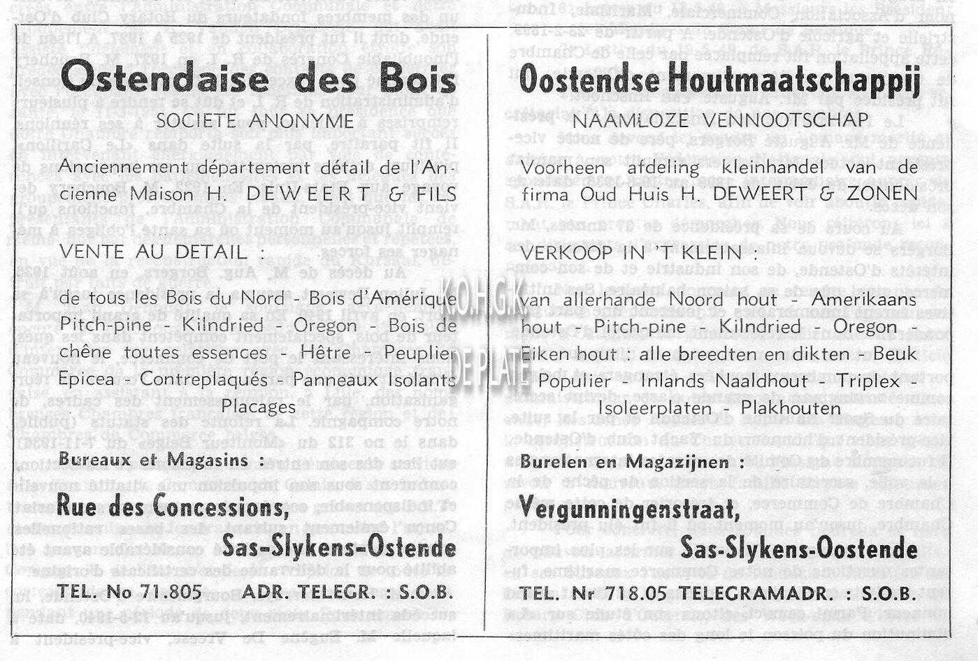 Trefwoorden ADVERTENTIES ; HAVENBEDRIJVENOOSTENDSE HOUTMAATSCHAPPIJ (HOUTHANDEL)HANDEL ; HOUTHANDELVERGUNNINGENSTRAAT