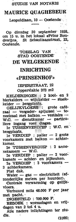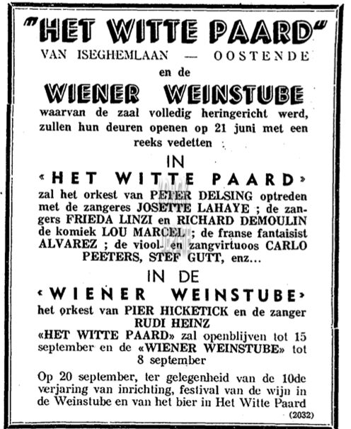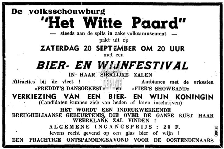 Advertentie : Het Witte Paard. Bier- en Wijnfestival. Van Iseghemlaan, Oostende. 20/09/1958