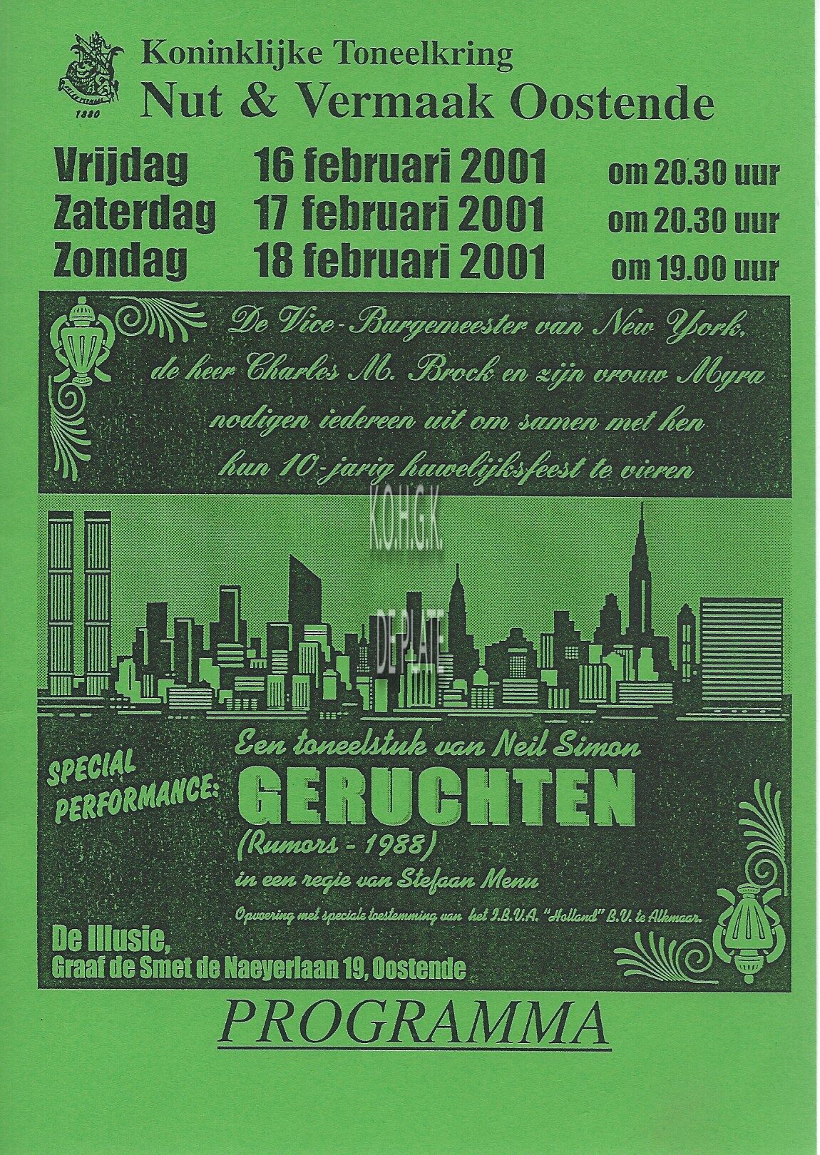 een toneelstuk van Neil Simon, in regie van Stefaan Menu. Bevat ook : Nut & Vermaak historisch... tussen de twee oorlogen 1914 - 1940 en op naar het eeuwfeest 1945 - 1980