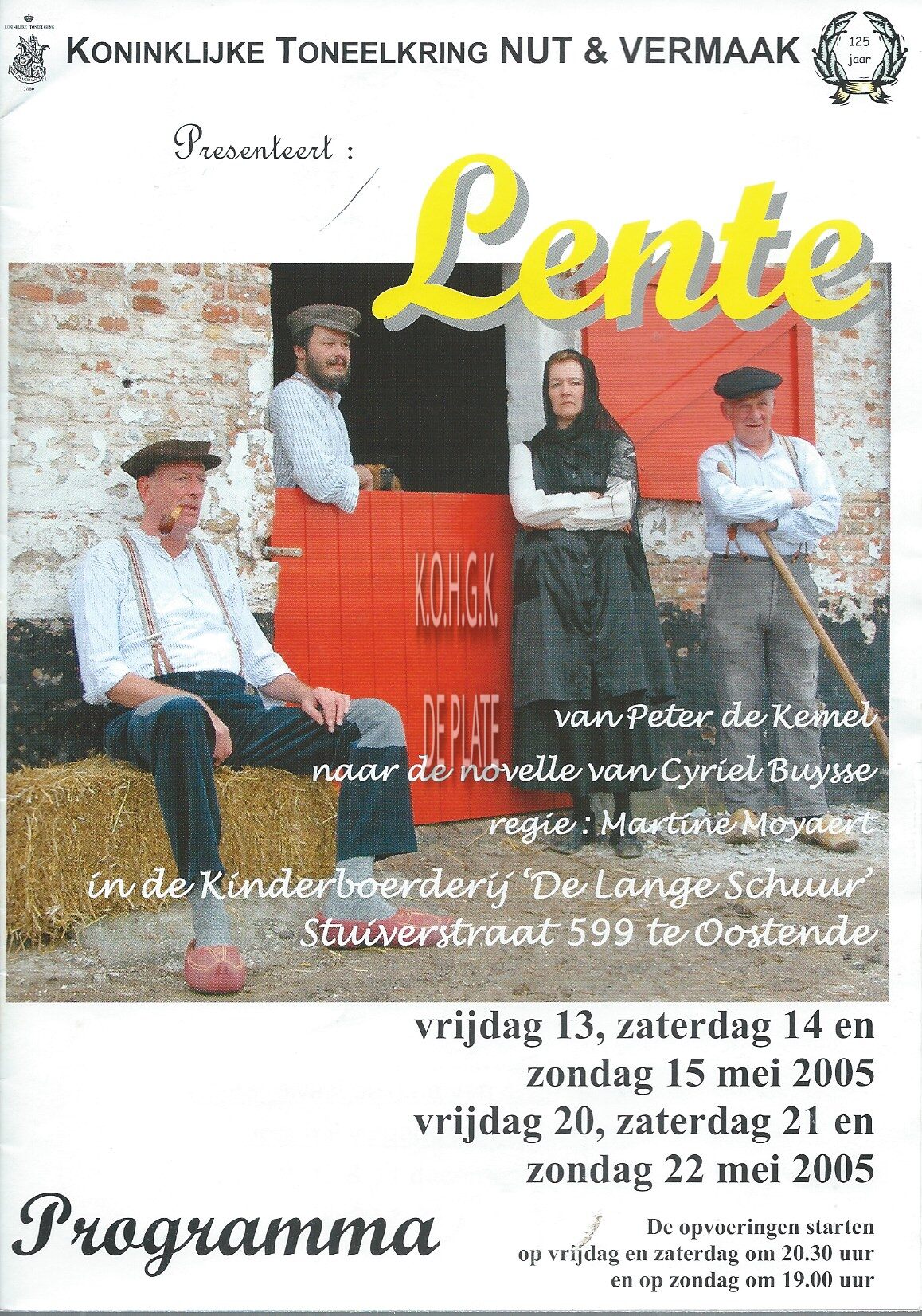 Programma : Koninklijke toneelkring Nut en Vermaak. Lente. Kinderboerderij "De Lange Schuur". 13-15, 20-22/05/2005