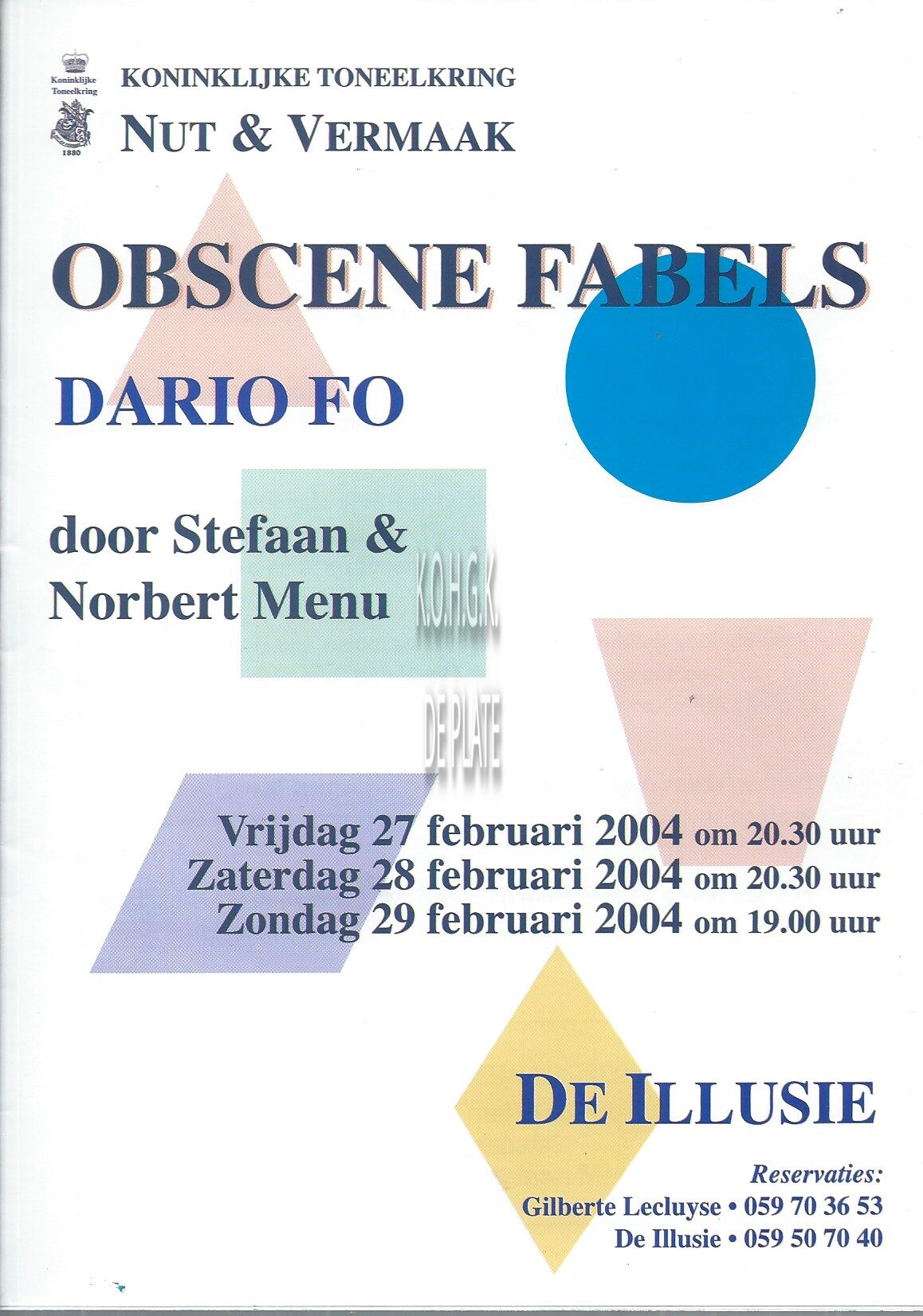 Programma : Koninklijke toneelkring Nut en Vermaak. Obscene Fabels. De Illusie. 27-29/02/2004
